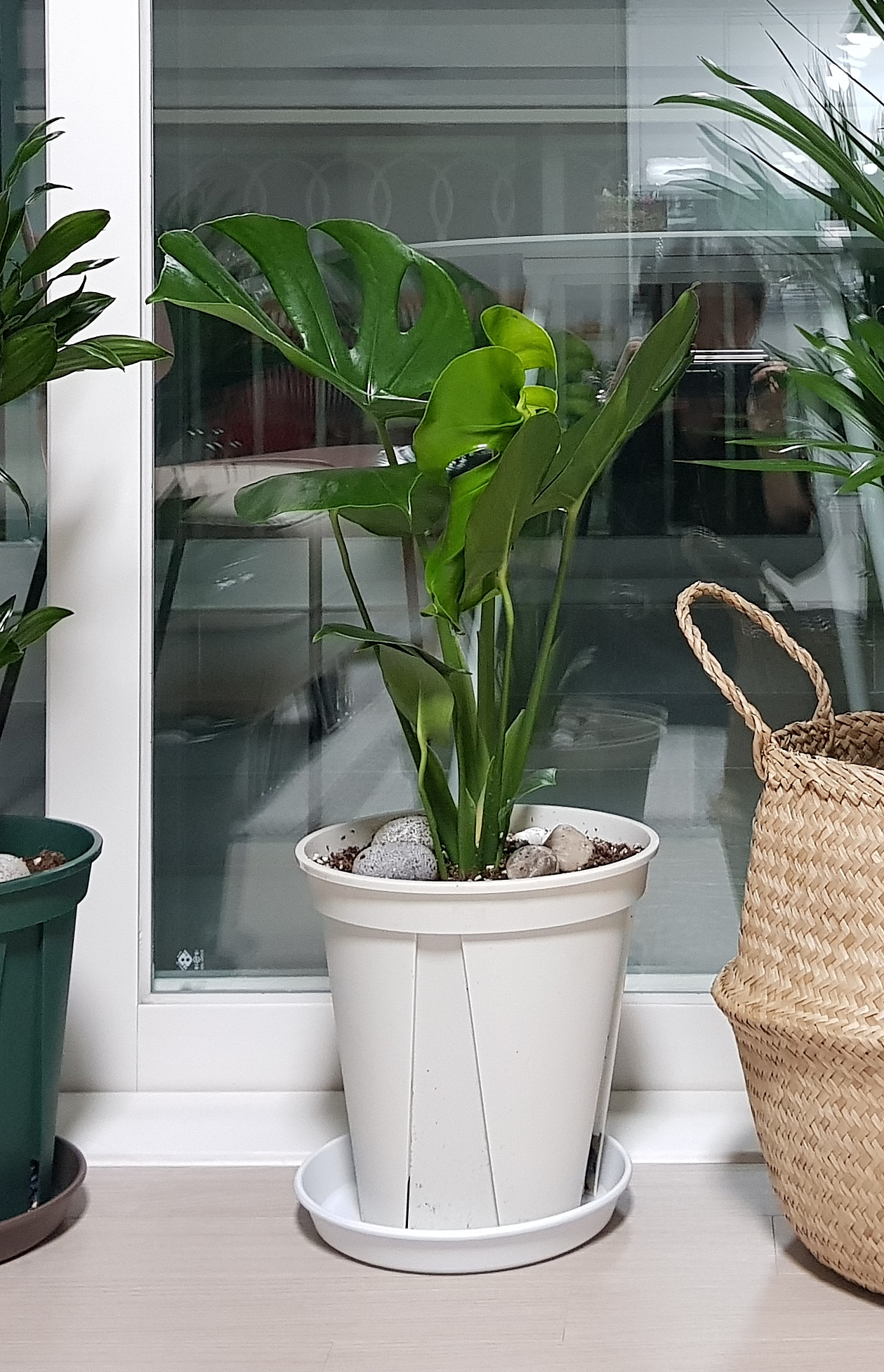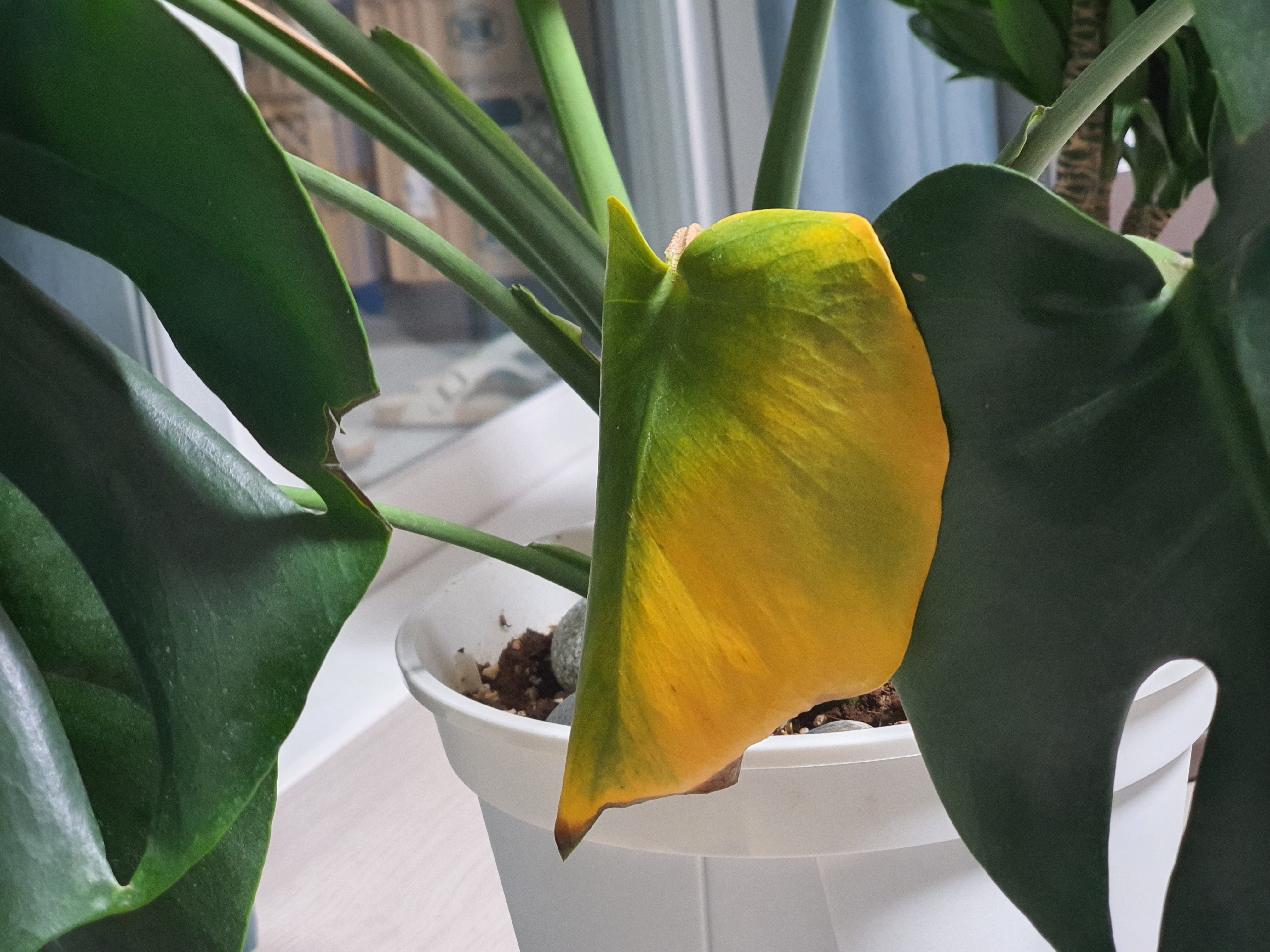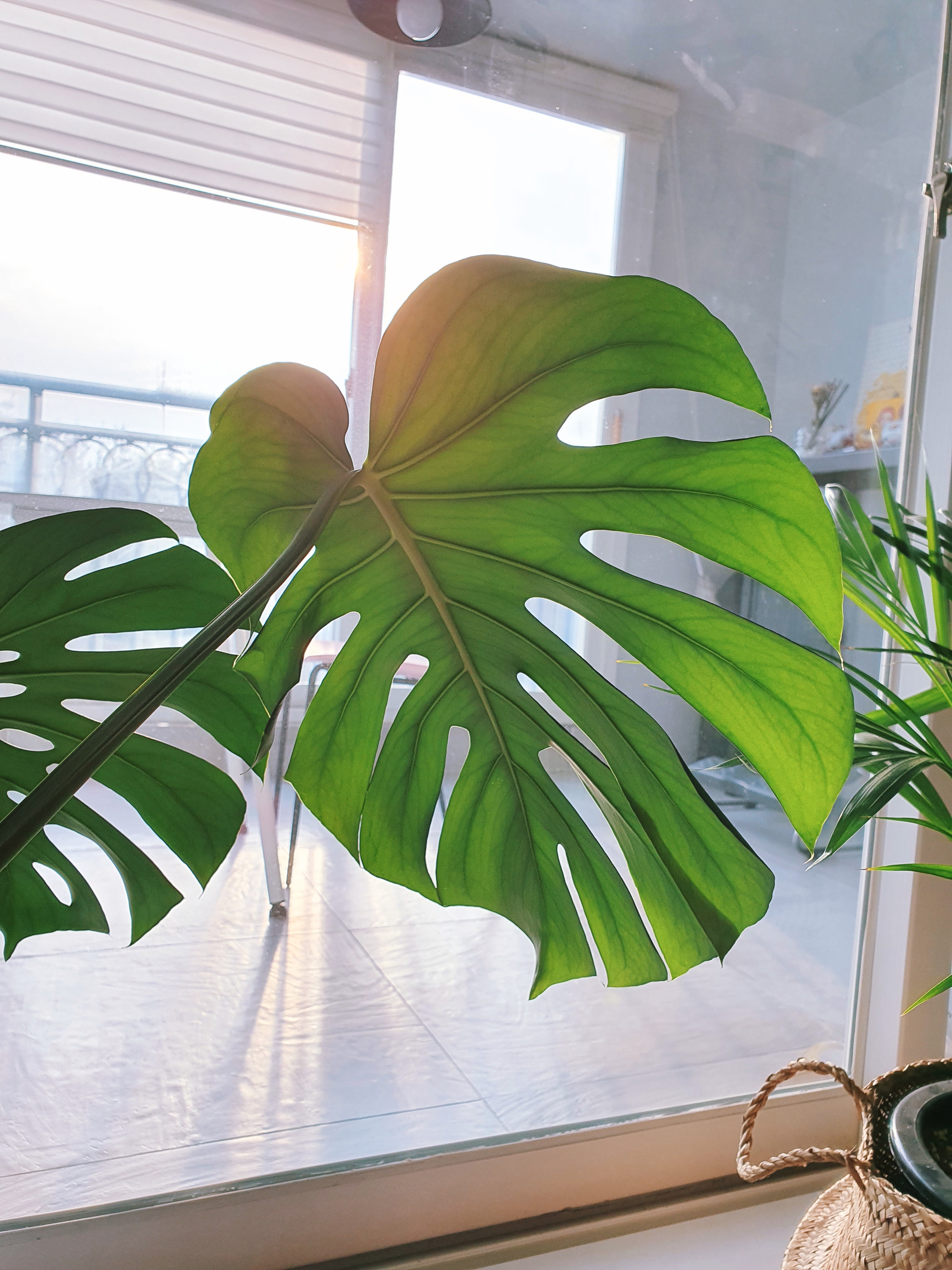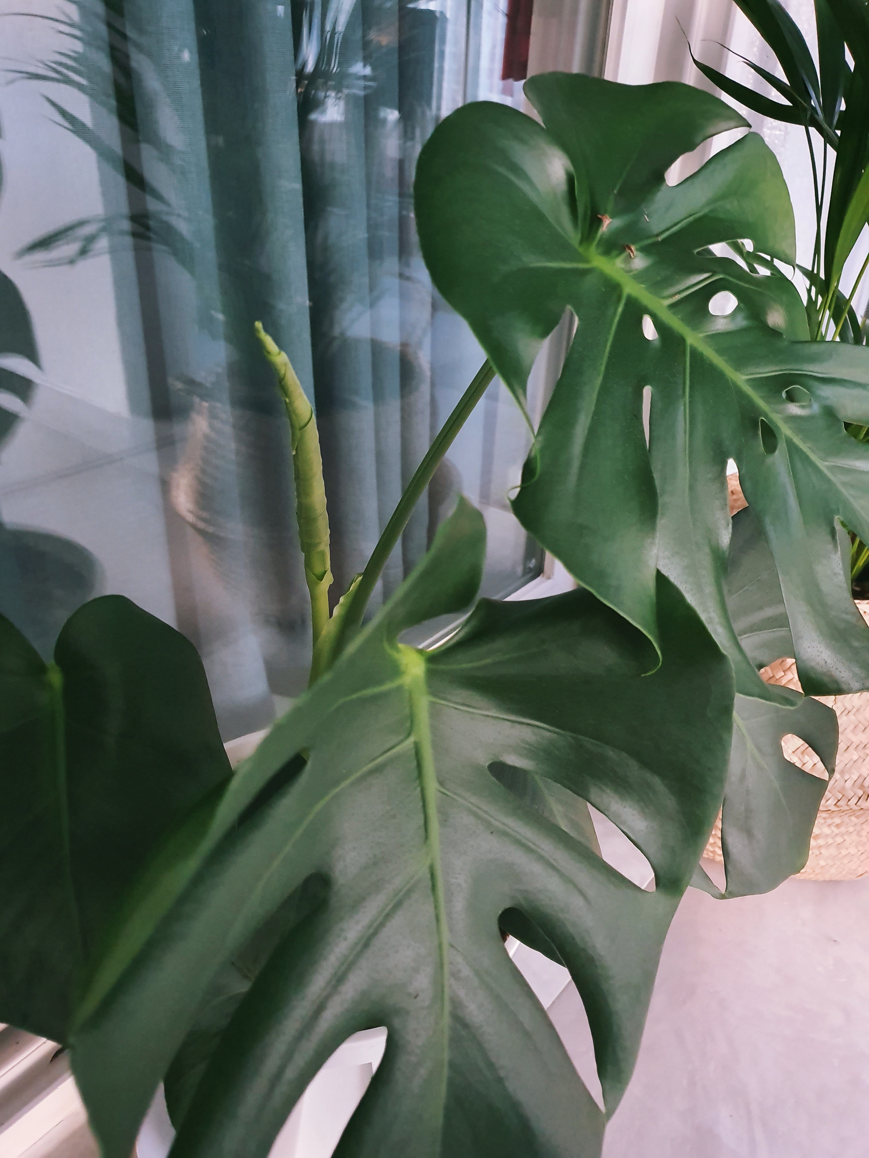 몬스테라는 월동이 안되므로 겨울에는 거실 창가에 놓았습니다. 집이 남서향이라 겨울이어도 창가 쪽은 따뜻한 편인데, 한파가 심한 날에는 조금 더 안쪽으로 옮겨주긴 했습니다. 높은 공중 습도를 좋아하는 녀석이다 보니 겨울에는 조금 비실비실해지는 것 같았지만, 그럼에도 새 잎을 한 장 내주었답니다.