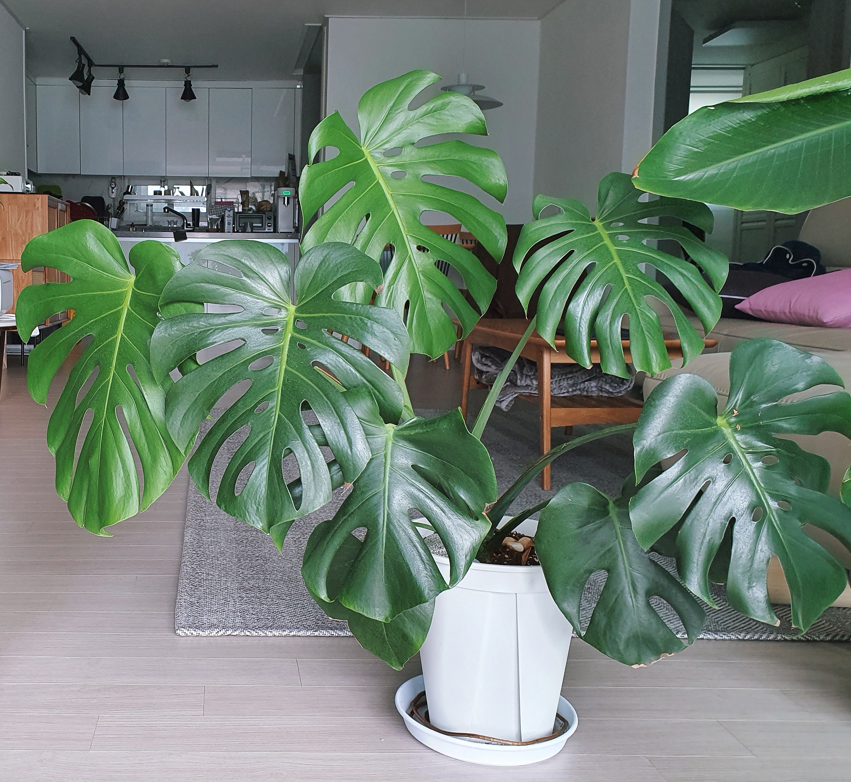 몬스테라는 키우기도 쉽고 성장이 빨라서 눈에 자라는 게 보이기 때문에, 식물 초보자 분들에게 추천해드리고 싶은 식물입니다. 이국적이고 예쁘기도 하고요. 제가 몬스테라를 키우면서 체득한 방법이 반드시 옳다고는 볼 수 없고 저희 집에만 맞는 방법일 수 있지만, 몬스테라에 관심이 있는 분들께 작은 도움이 되었으면 좋겠습니다.
