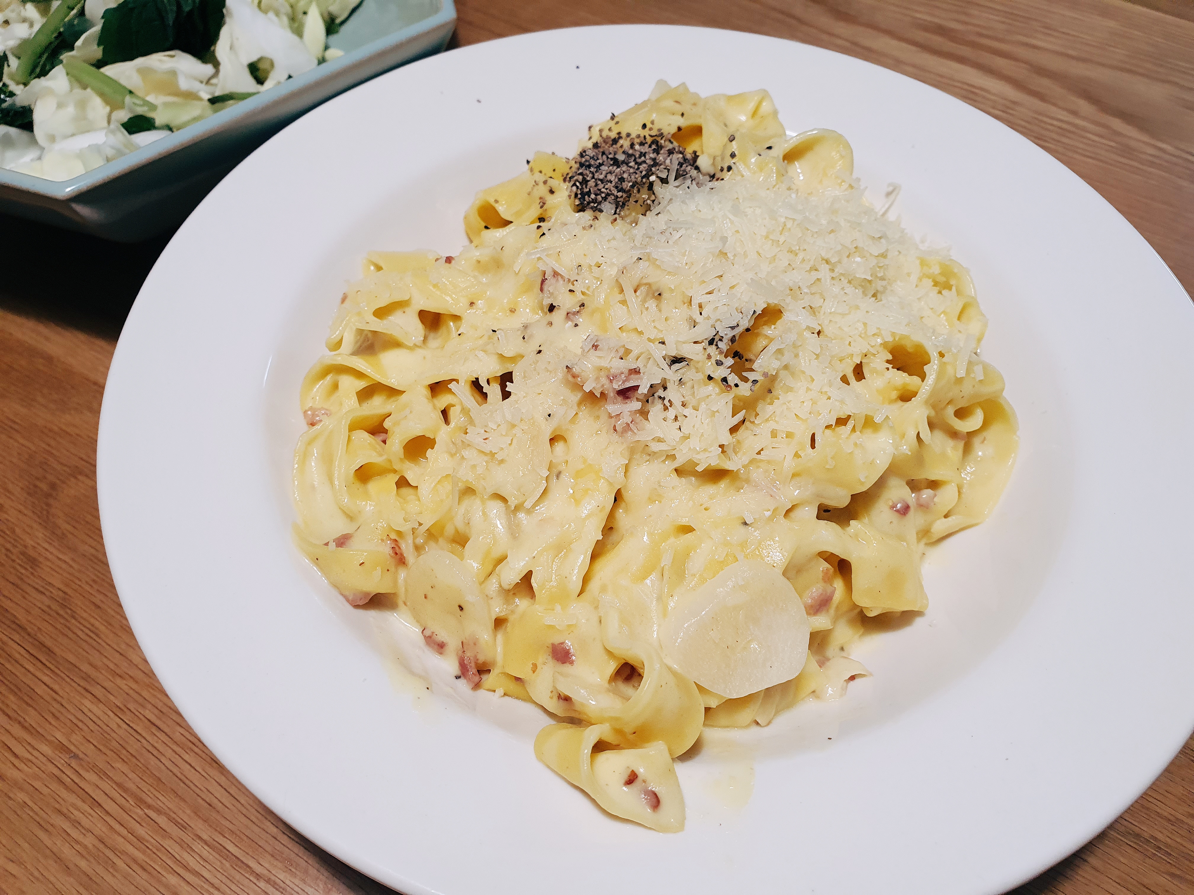 파스타 맛도 꽤 좋았습니다. 보통 집에서 만들어 먹는 국내 식품 브랜드 파스타보다는 확실히 꾸덕하면서 맛있었어요. 생면 식감도 생각했던 것보다 더 좋았고요. 그렇지만 레스토랑에서 만든 파스타에 비해서는 당연히 부족한 부분이 있었습니다. 간은 잘 맞는데 들어가는 재료가 부족해서 그런지 풍부함이 느껴지는 맛은 아니었어요.