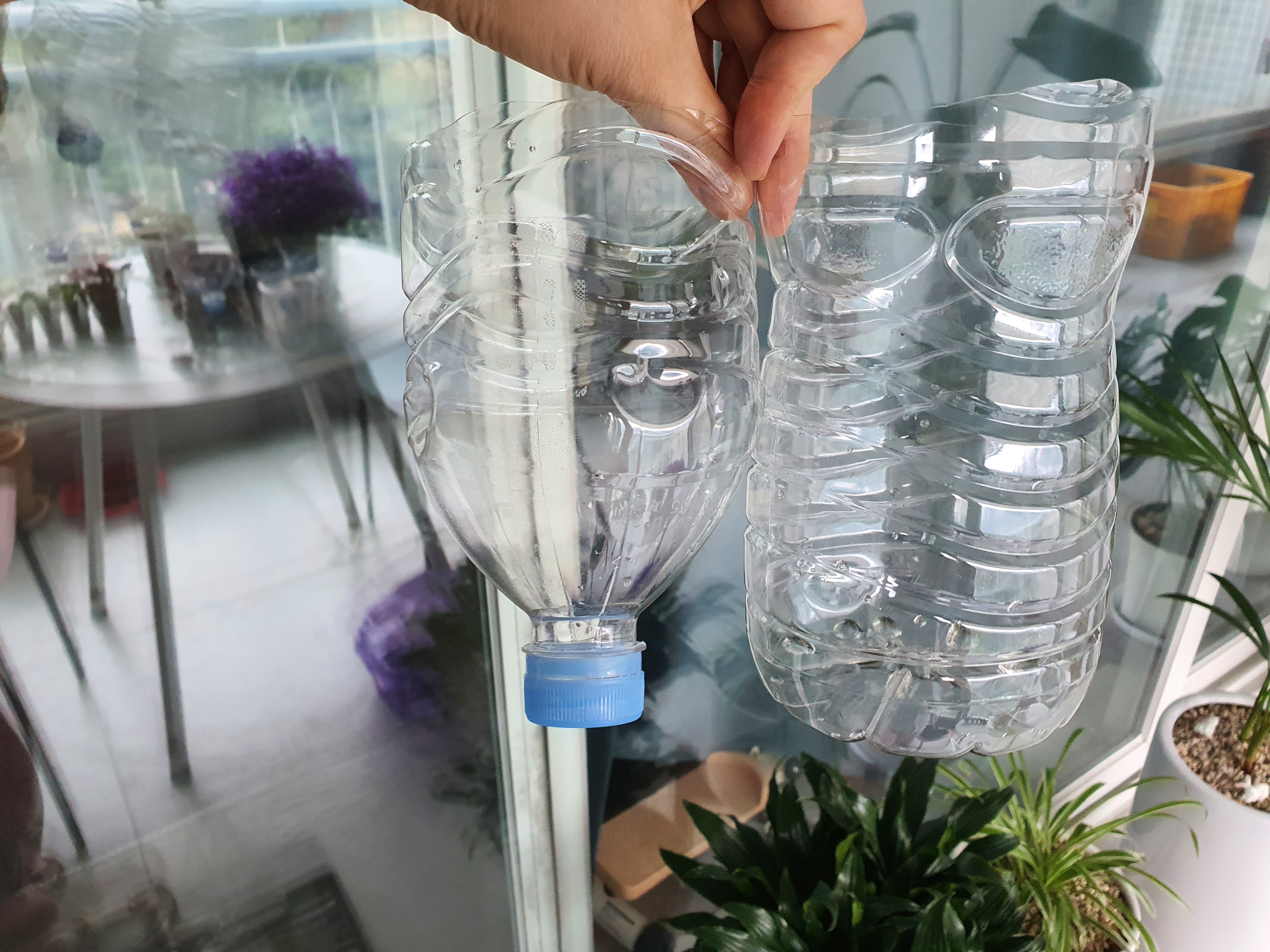 - 페트병 하단부에 물을 채우고 페트병 상단부를 얹어줍니다.