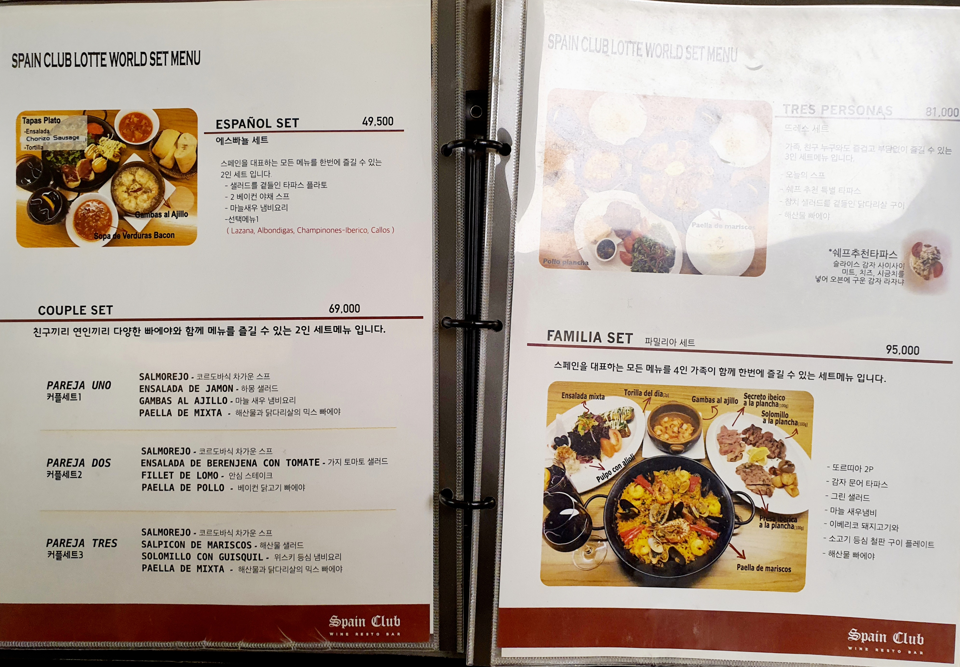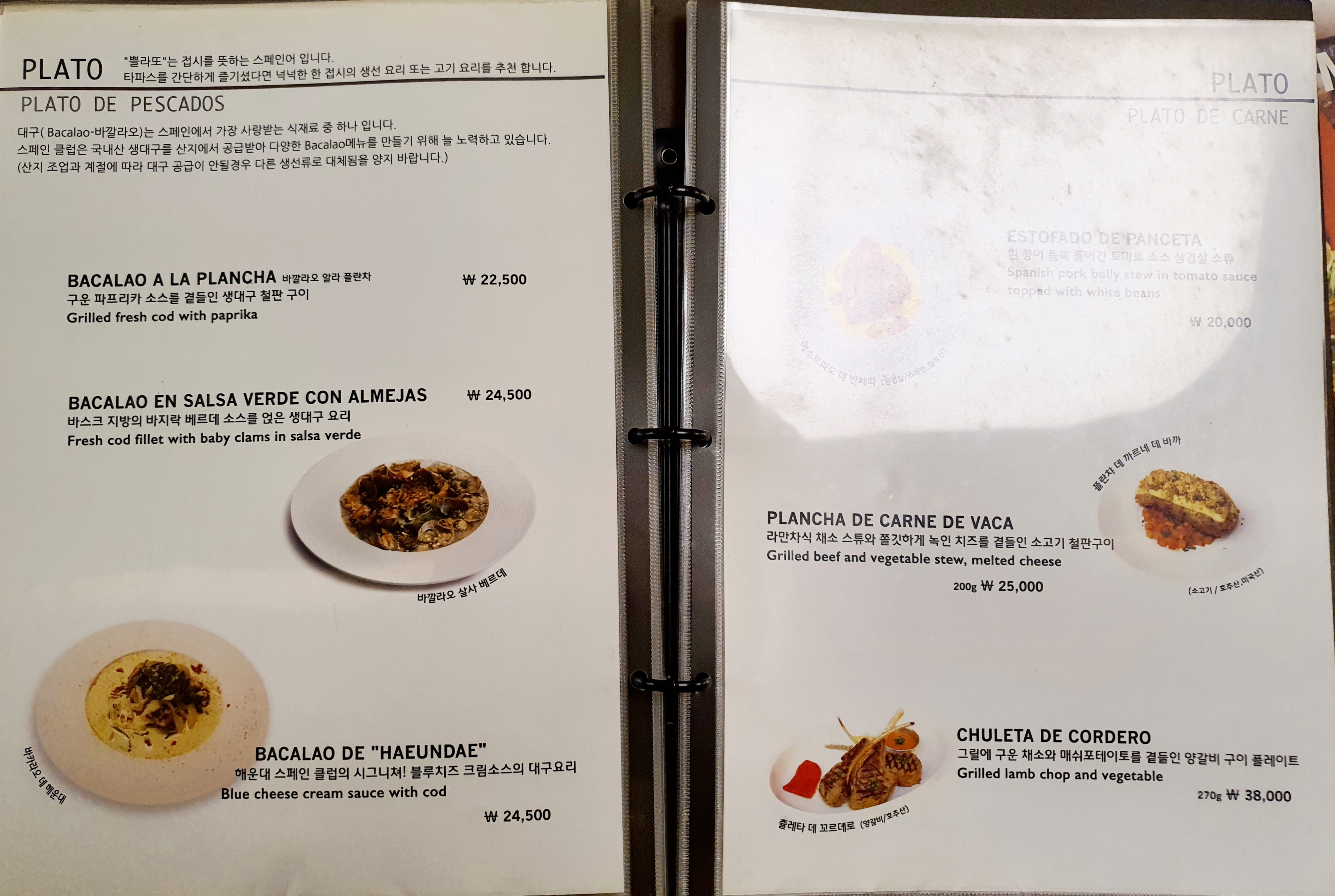 요리가 유명한 스페인답게 메뉴가 많았습니다. 메뉴판에 사진이 있어 음식을 고르는 데 많은 도움이 되었네요.