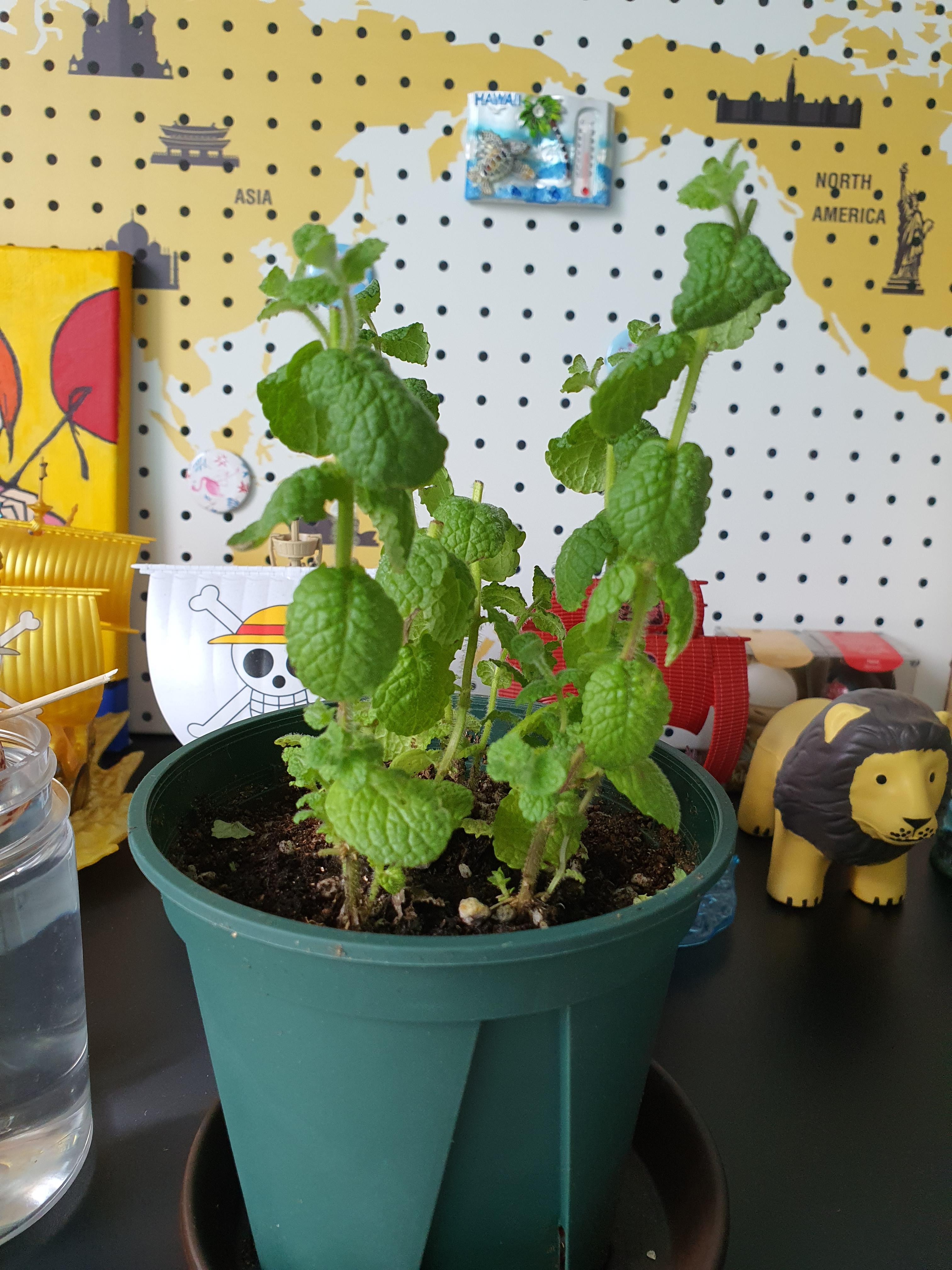 3월에 애플민트를 들여왔습니다. 식용식물과 꽃식물을 좋아하는 남편이 '모히또'에 혹해서 데려온 아이예요. 애플민트 잎에서 나는 향도 좋고, 외국에서는 잡초 취급을 받을 정도로 잘 자라서 키우는 재미가 있습니다.