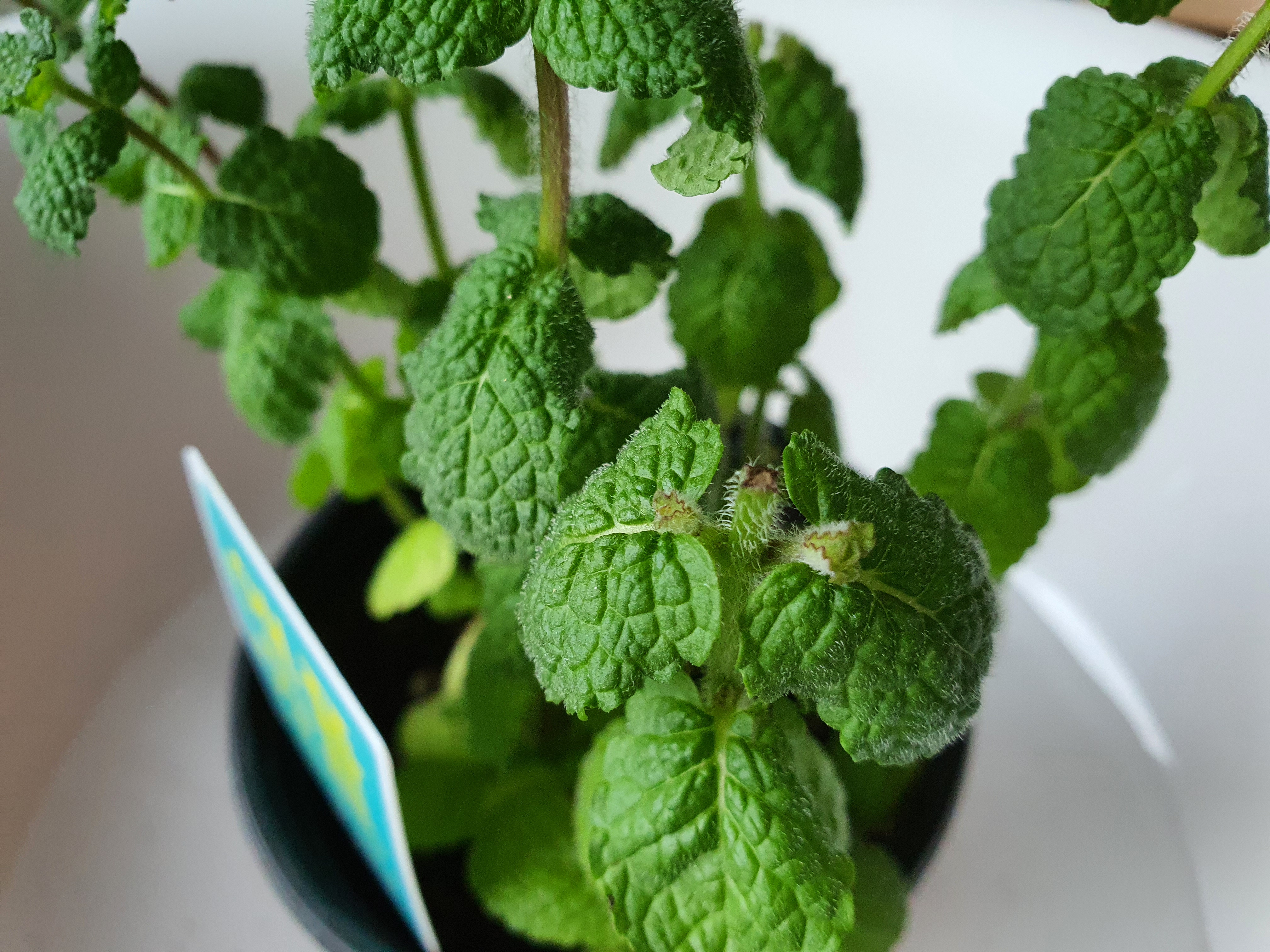 위키백과에 따르면 애플민트는 허브의 일종으로 사과향이 난다고 해서 애플민트라는 이름이 붙여졌습니다. 꿀풀과의 박하 속(민트)에 속하는 식물이라고 합니다. 지중해 지역과 남유럽~서유럽 일대가 원산지이고 잎과 줄기에 솜털이 나 있습니다. 최대 1m 높이까지 자란다고 해요. 물을 좋아하지만 그만큼 통풍이 잘 되어야 합니다. 성장이 빠른 편이긴 하나, 쉽게 웃자라기도 합니다. 생육 적정 온도는 15~25도이고 월동도 가능합니다.