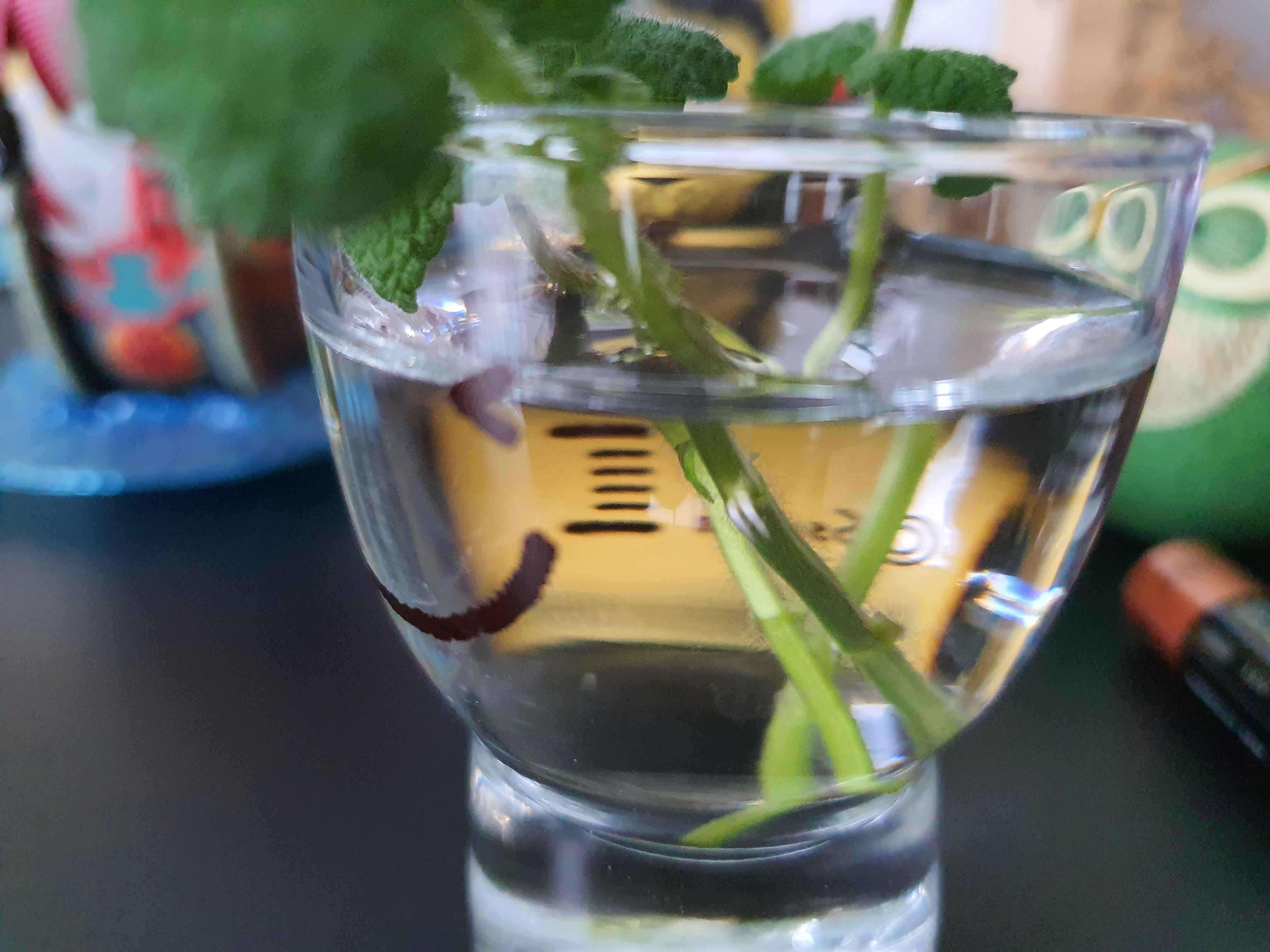 마치 맹물 같지만... 향이 엄청 납니다. 진짜 적은 양의 잎으로 우린 차인데도 존재감이 뿜뿜입니다. 애플민트를 키우고, 말려서 차를 우리는 데까지 대략 2주 정도 걸리는 듯합니다.