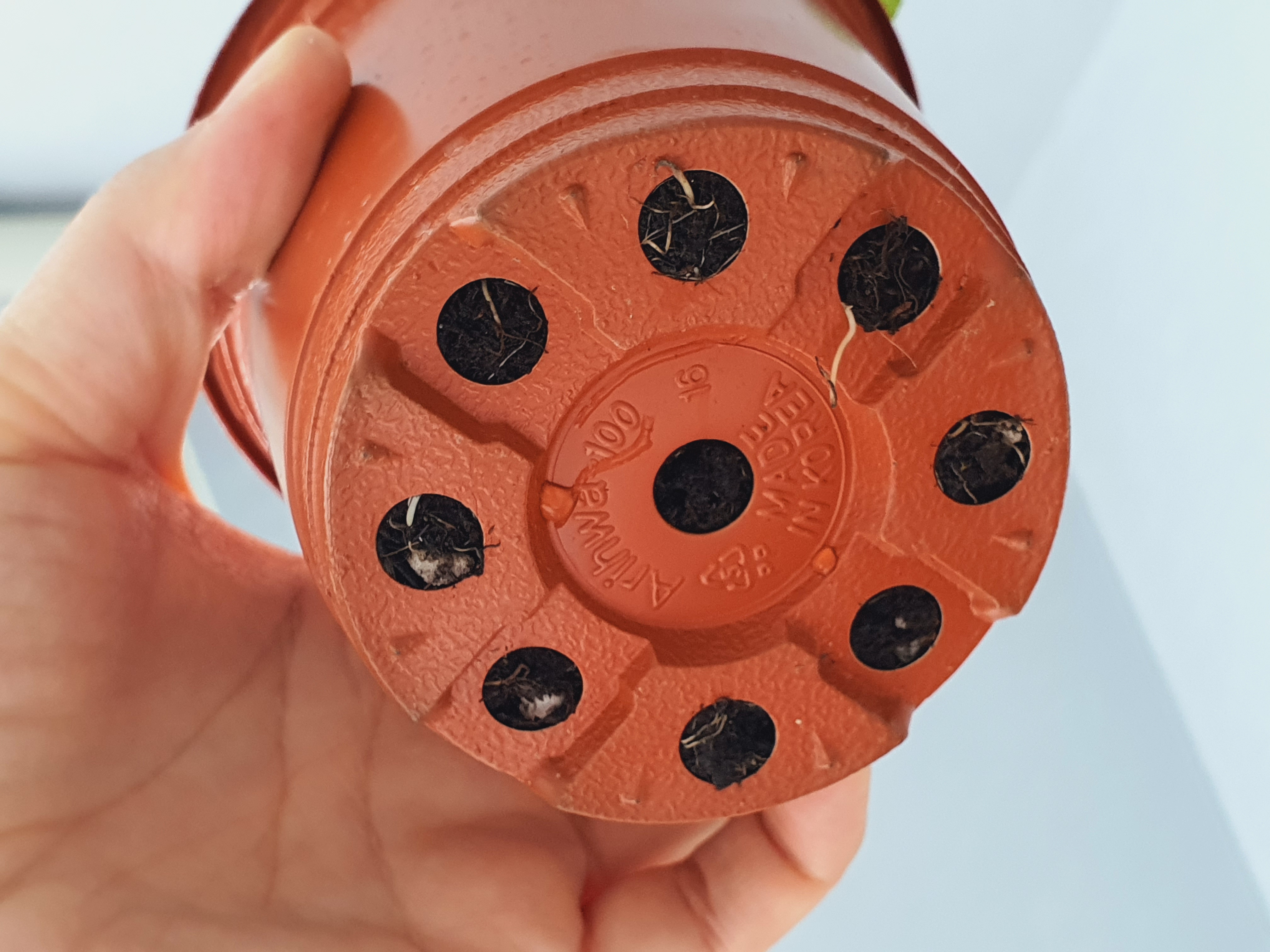 뿌리가 화분구멍 밑으로 나오기 시작했습니다. 성장세가 무서운 녀석입니다.