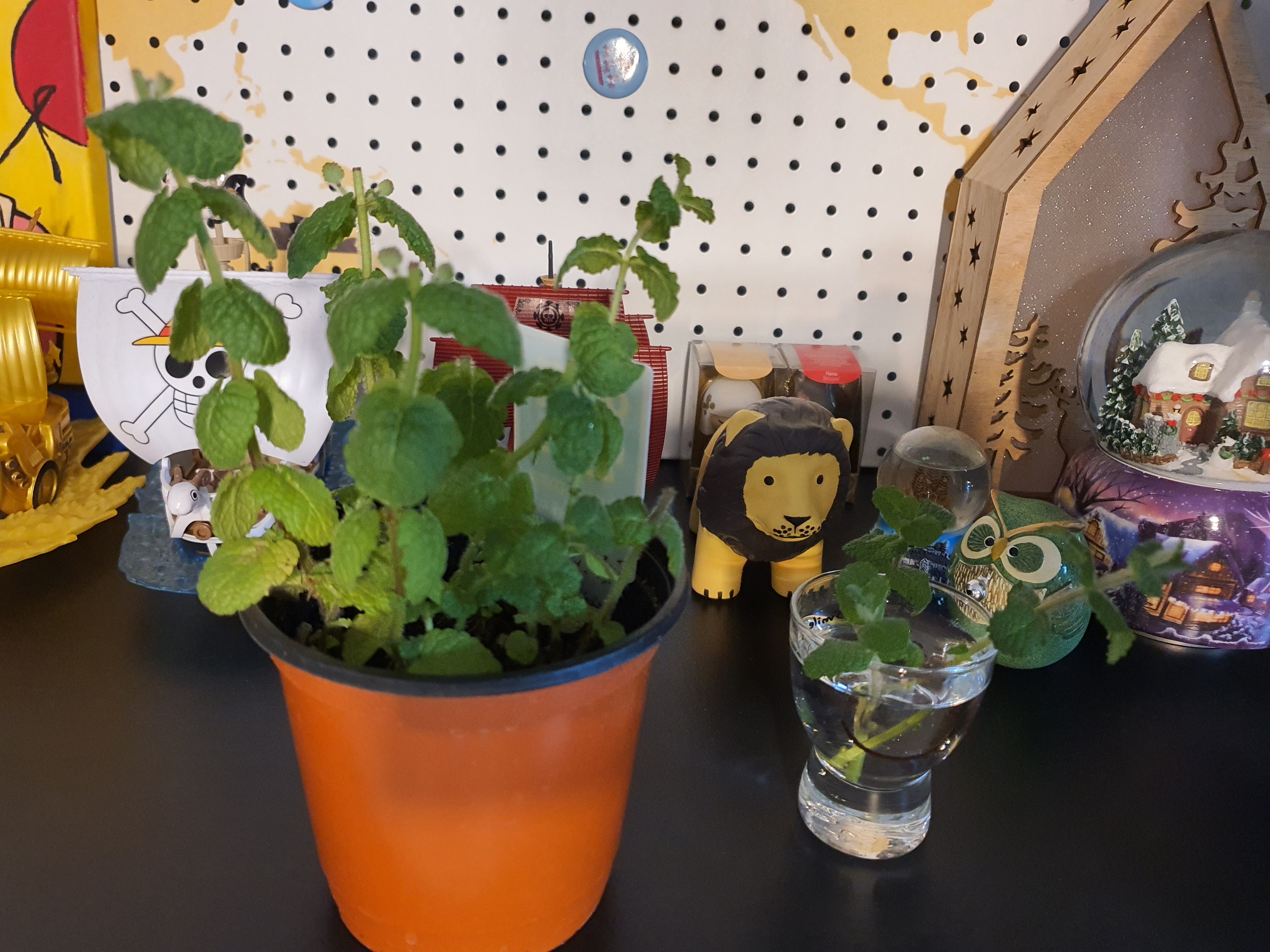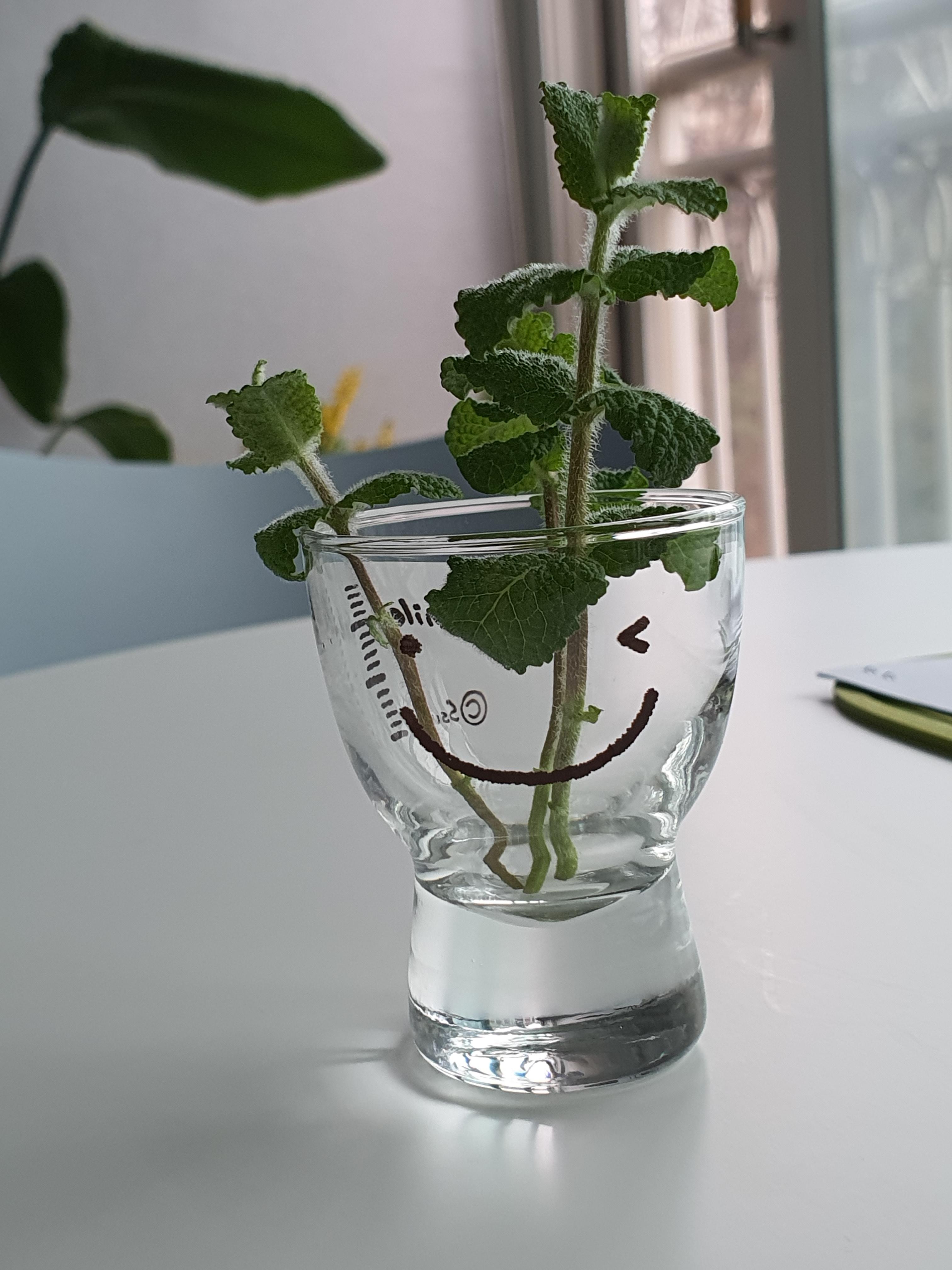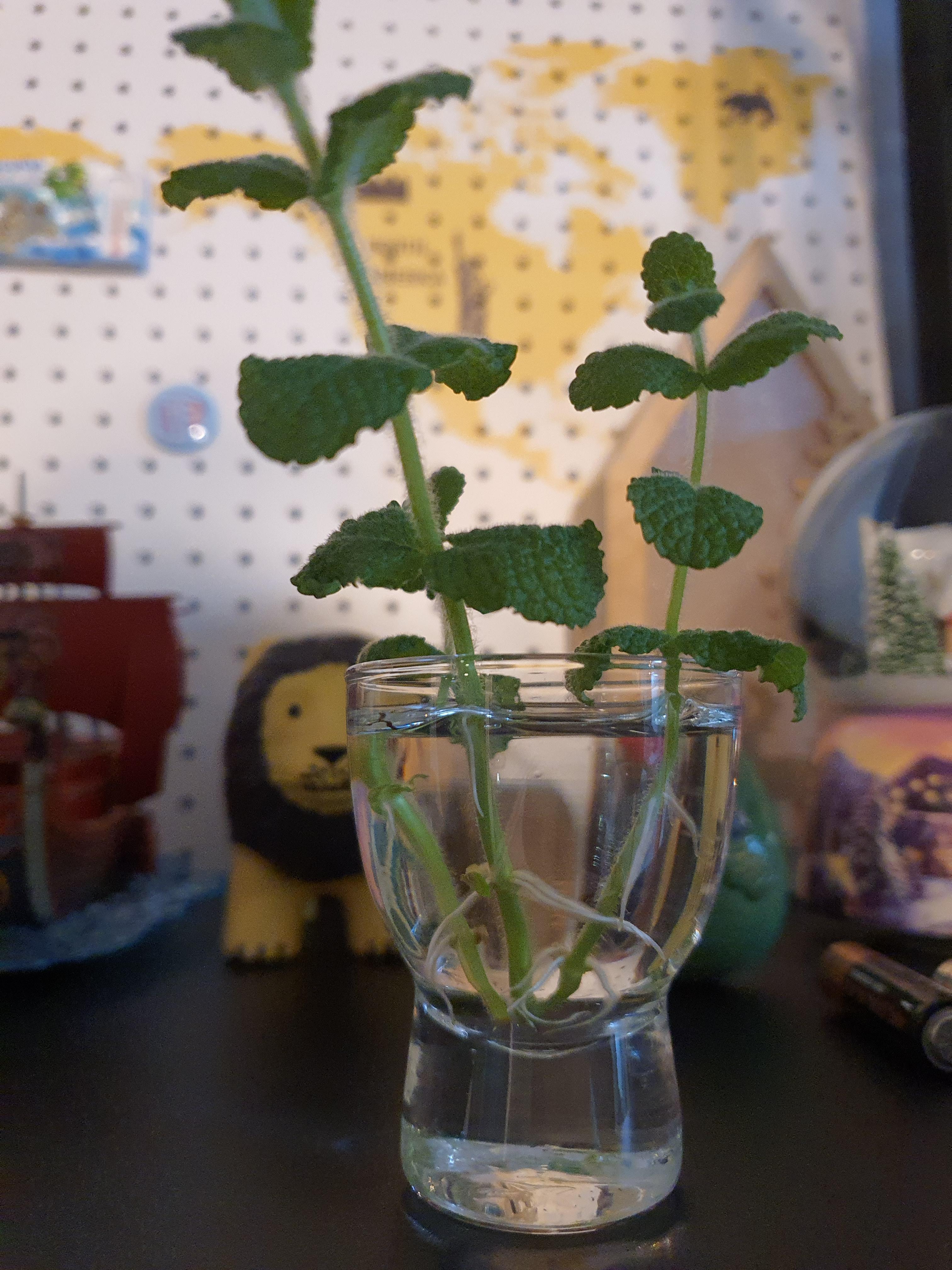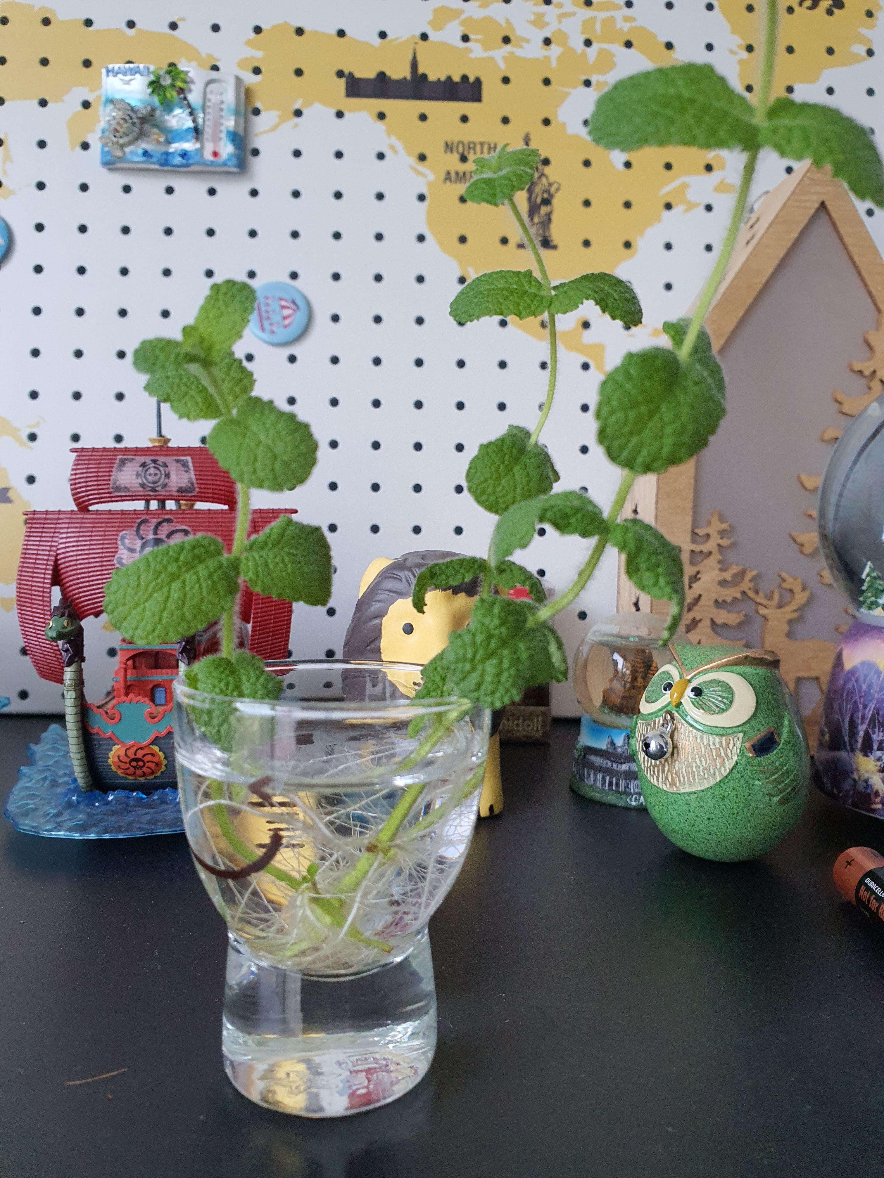 애플민트는 줄기를 자르면 더듬이마냥 2개의 줄기가 새로 자라납니다. 사진에서 이제 막 돋아나는 더듬이 같은 부분을 발견하셨나요? 애플민트가 2배로 늘어나서 좋긴 하지만 솔직히 좀 못생겨집니다.