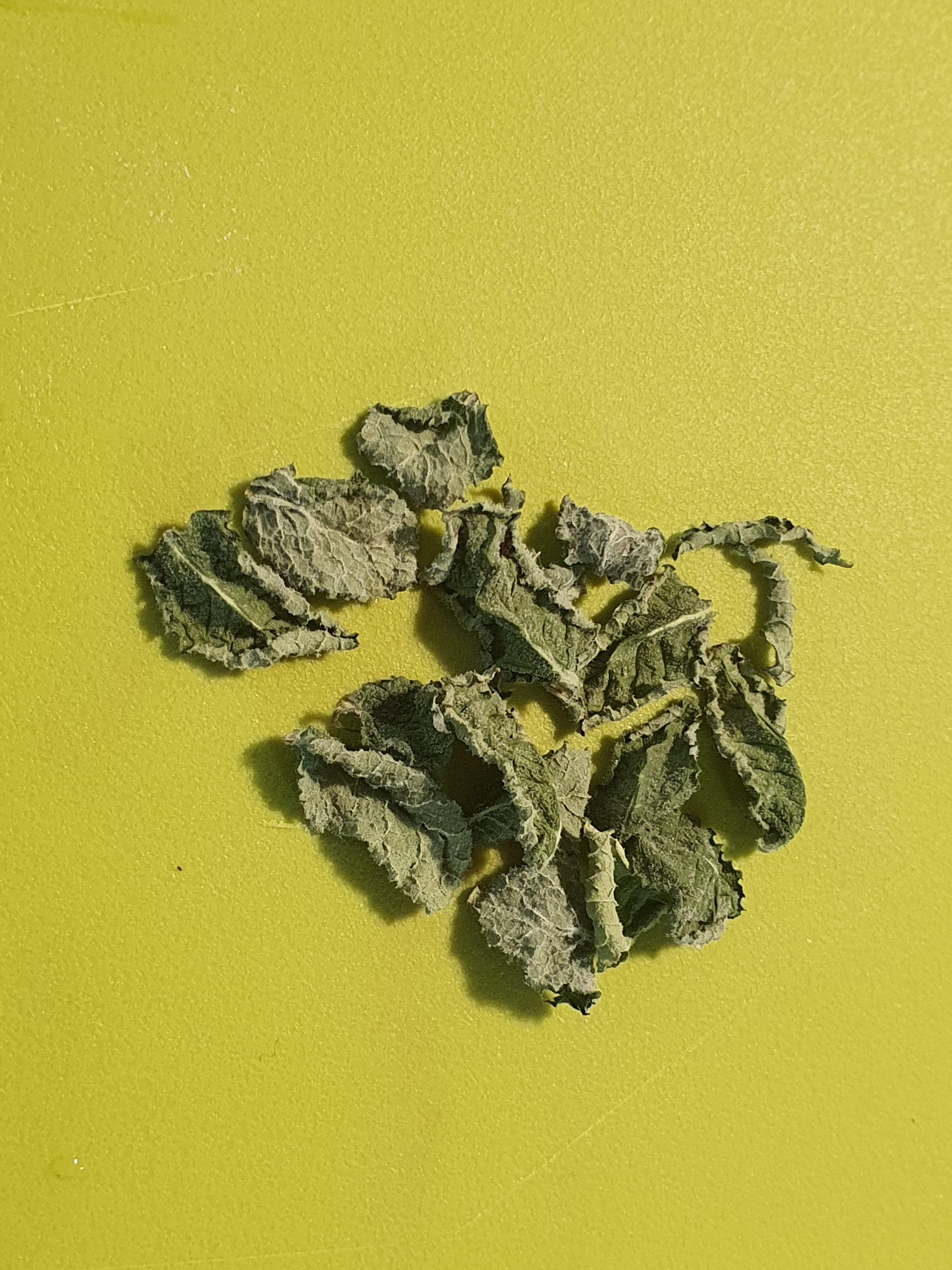 5일 동안 애플민트 잎을 말렸더니 엄청나게 쪼그라들었어요.
