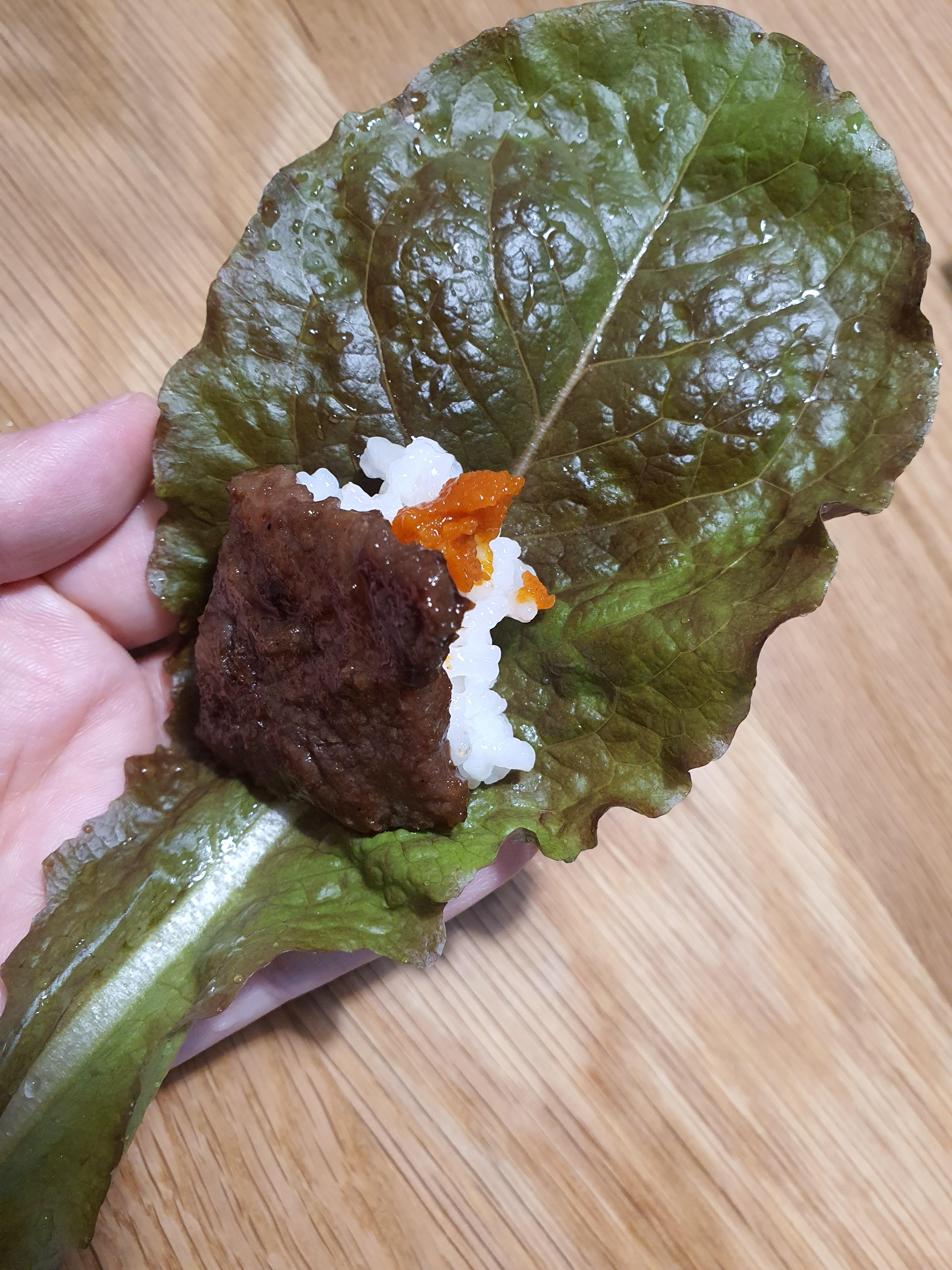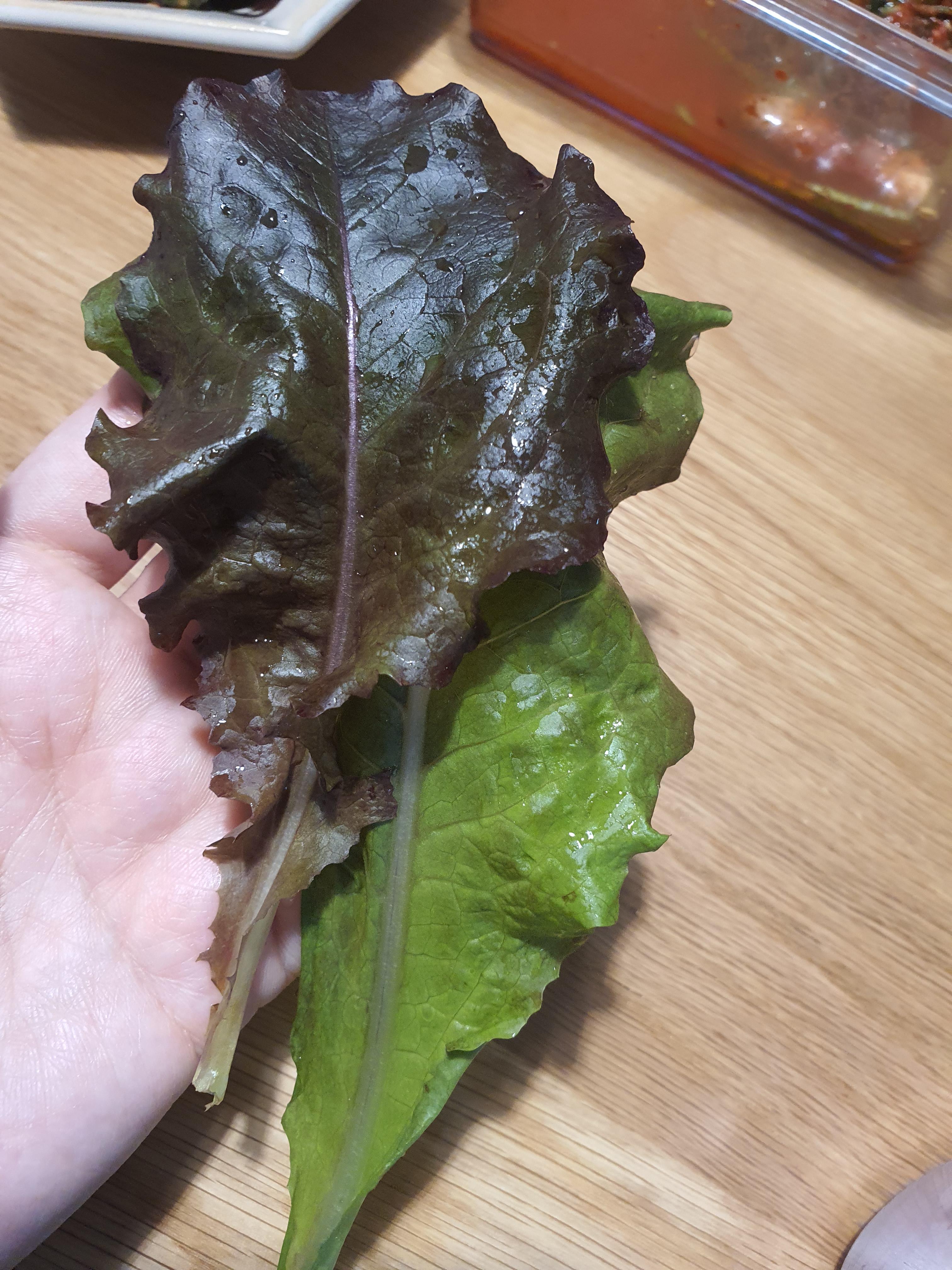 솔직하게 평가하자면 상추는 별로 먹음직스러워 보이지는 않습니다. 그래도 그나마 괜찮은 녀석들만 따서 한 번 먹어보았습니다.