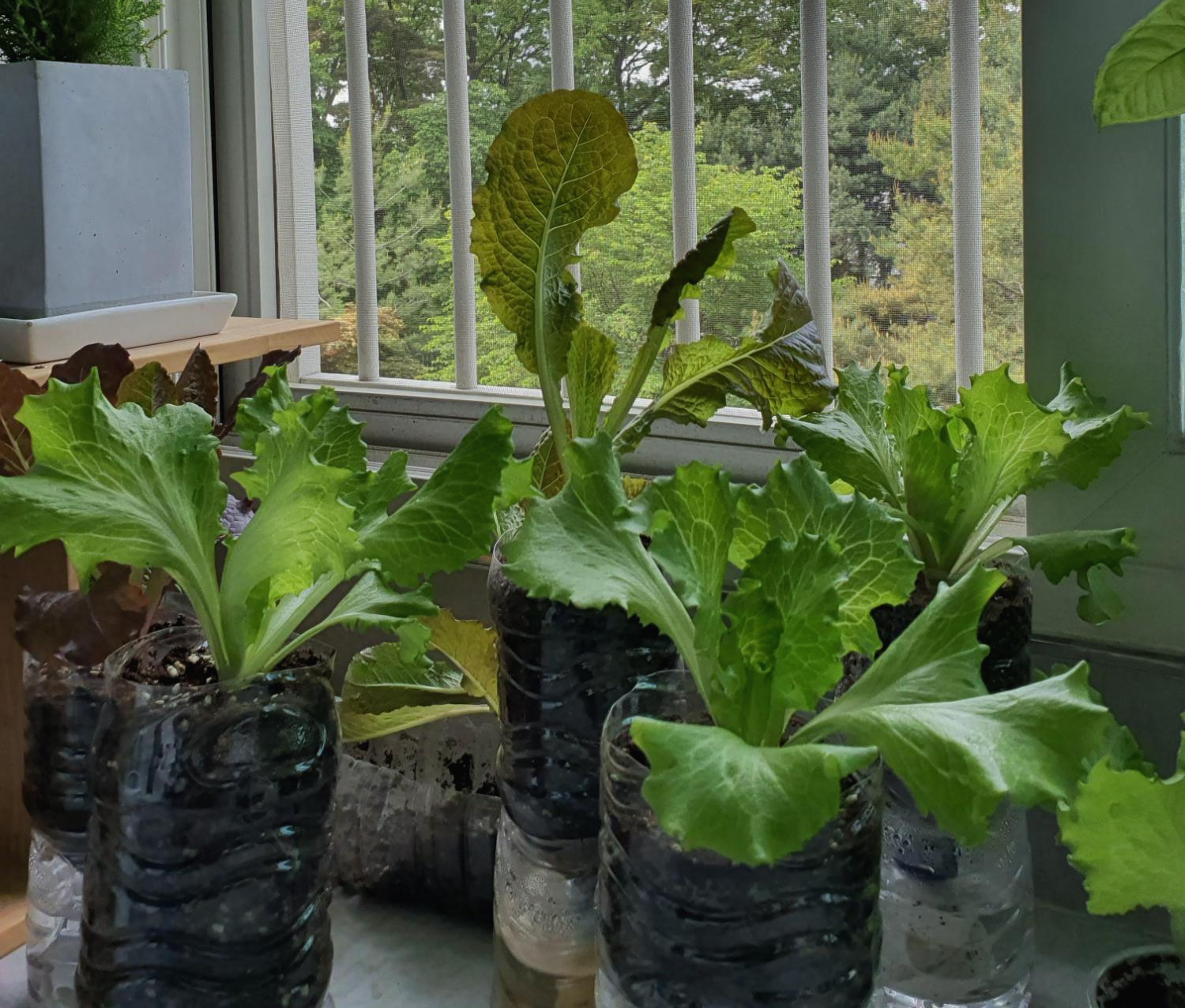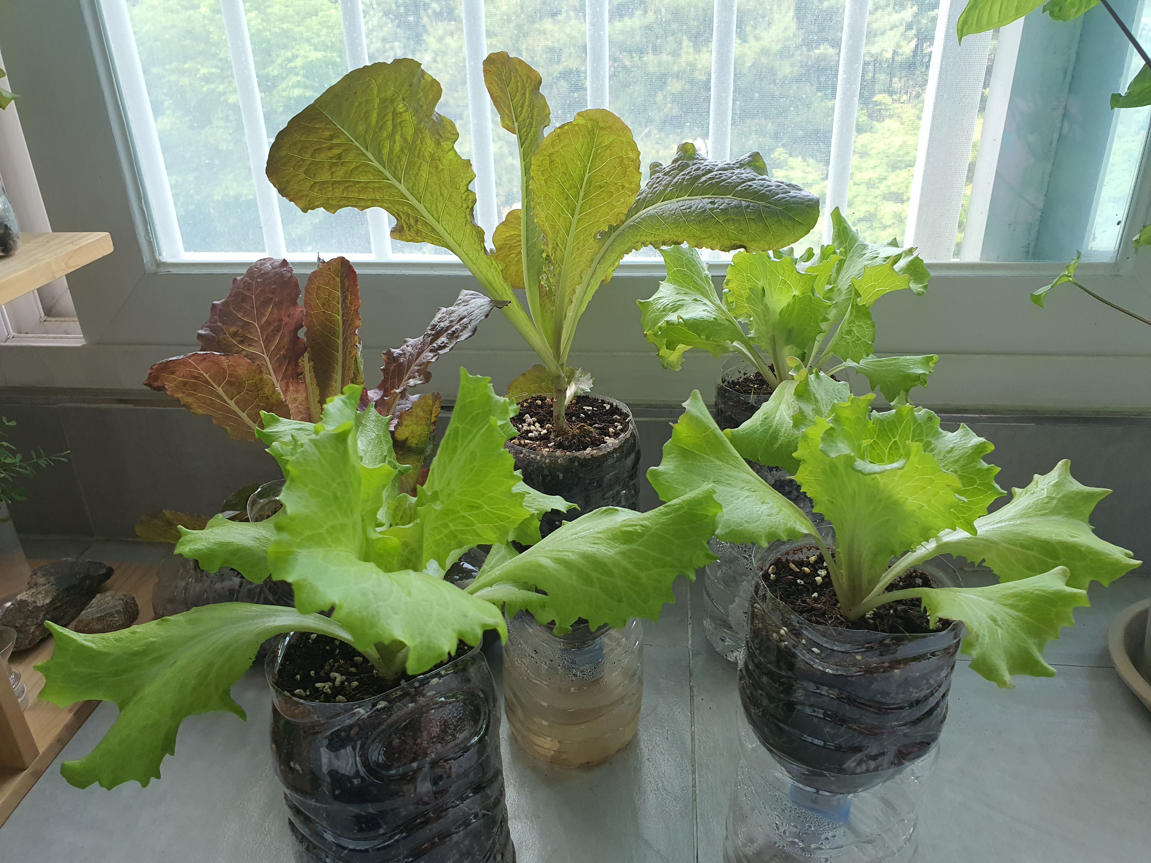 그리고 의외로 방충망에서 걸러지는 햇빛의 양도 상당한 것 같습니다. 심하게 웃자라서 비실했던 상추를 방충망이 없는 유리창 앞에 옮겨 놓았는데, 일주일 만에 잎도 건강해지고 줄기도 굵어지는 등 상태가 많이 좋아졌어요. 집에서 가장 햇빛이 잘 드는 곳을 찾아서 상추에게 양보하세요 :)