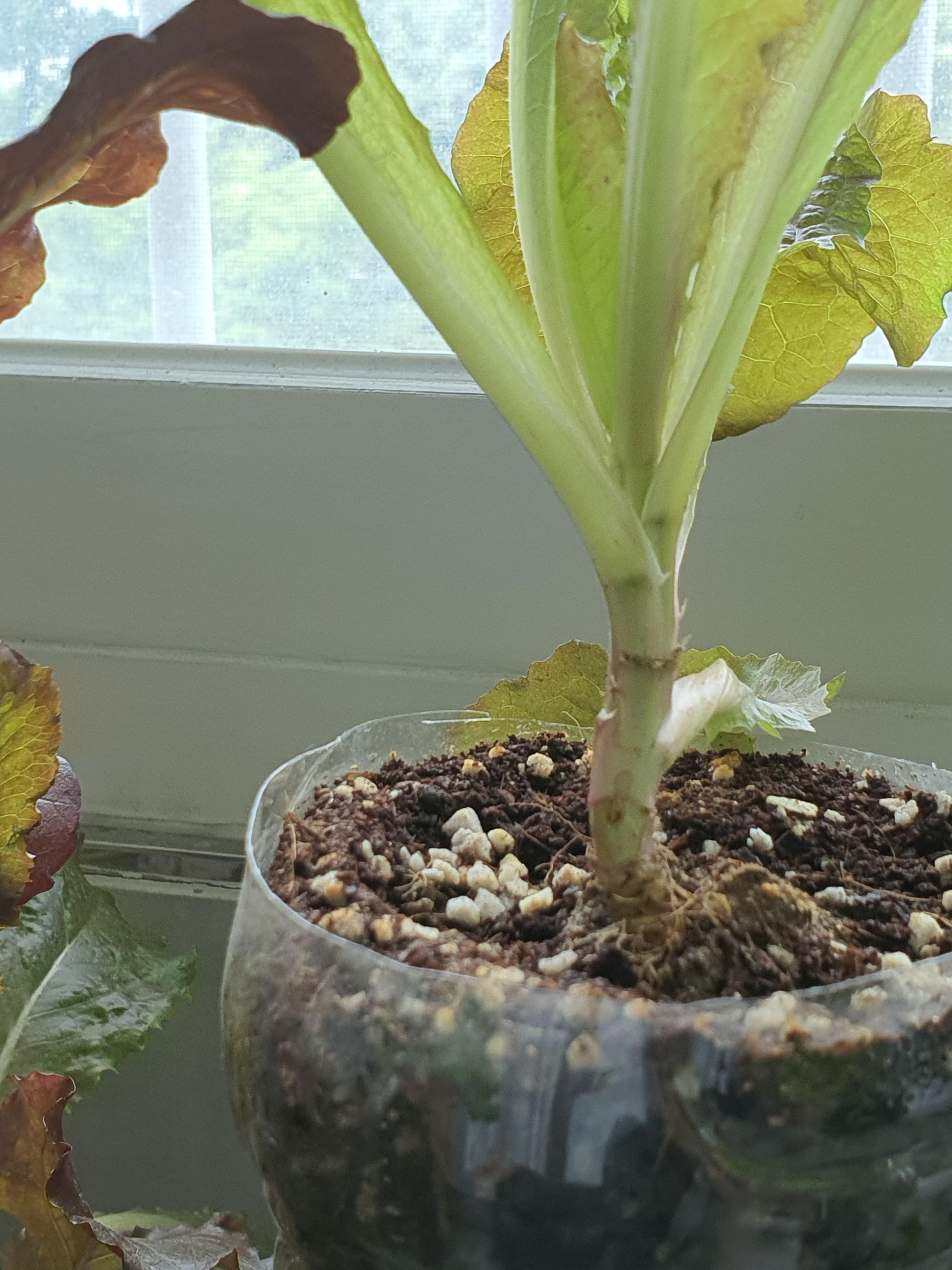 원인을 추정해 보면... 베란다로 걸러서 받는 햇빛은 상추에게 충분하지 못하다, 페트병보다는 스트로폼 화분이 상추 키우기에는 더 낫지 않을까 생각해봅니다.