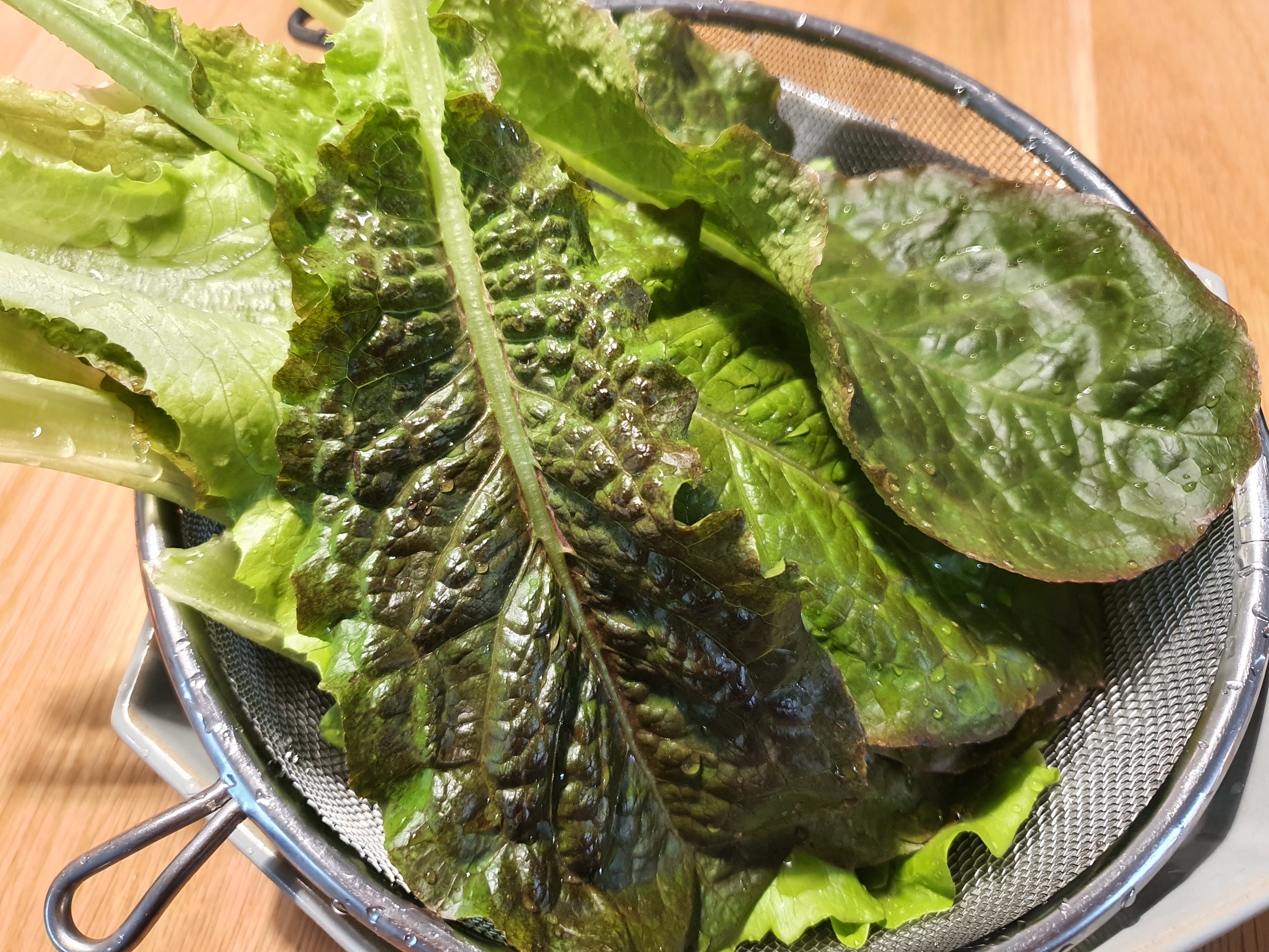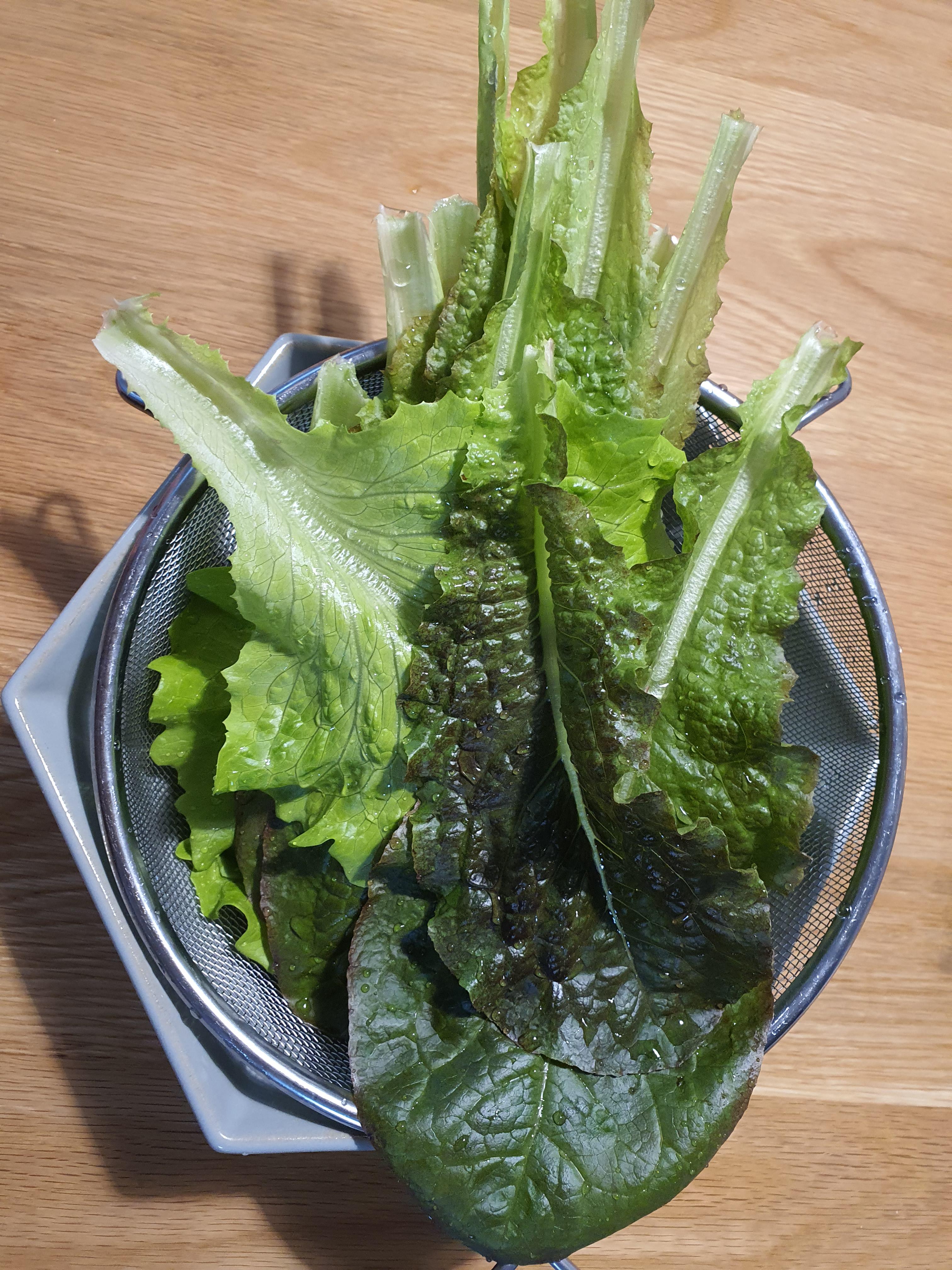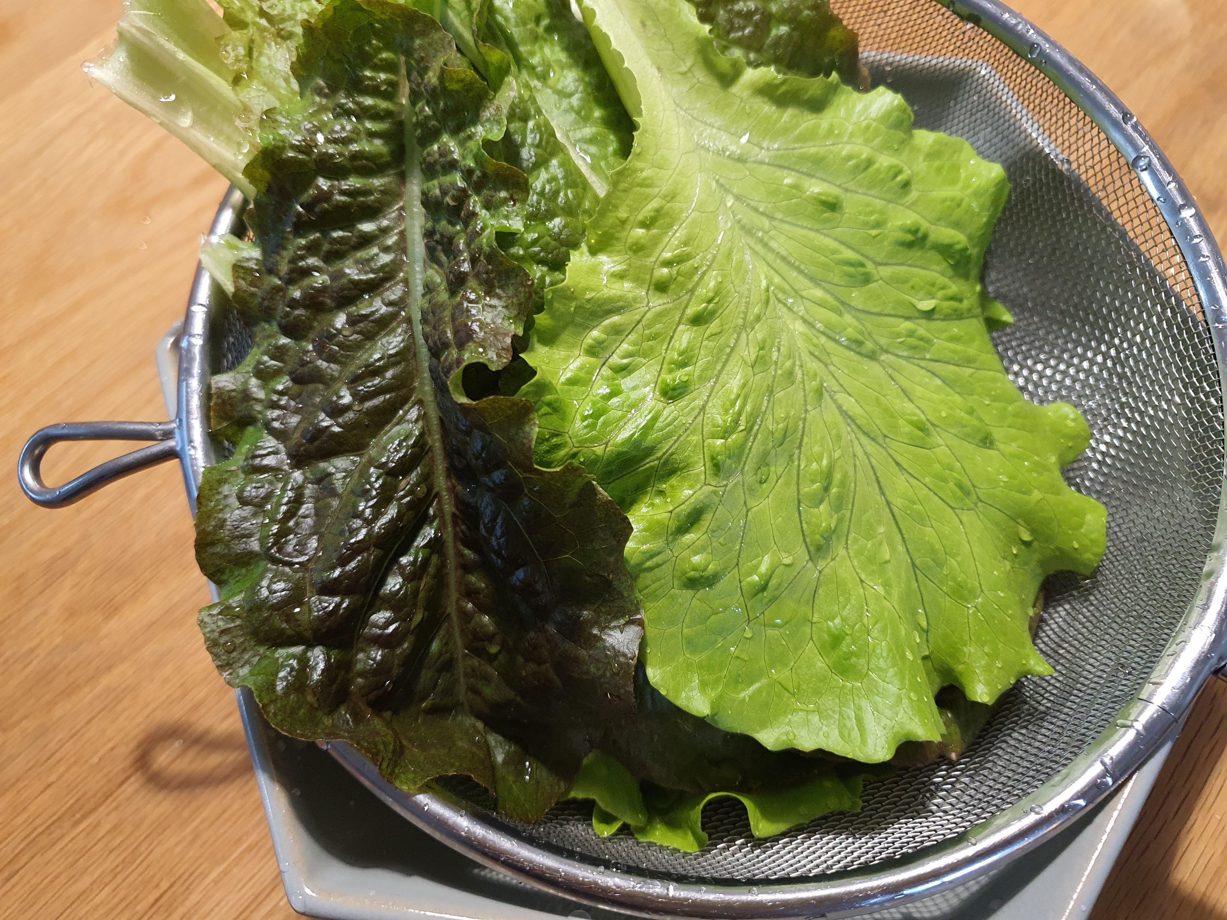 저희 집 요리 담당은 남편이라서, 저는 베란다에 나가서 상추를 따와서 씻었습니다. 10장 조금 넘게 딴 것 같아요. 이제 좀 상추스러워진 것 같아서 너무너무 기뻤답니다. 남편은 요리할 동안 저는 상추 사진만 잔뜩 찍었네요.