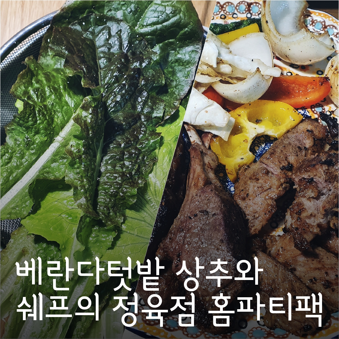 베란다텃밭 상추와 쉐프의 정육점 홈파티팩