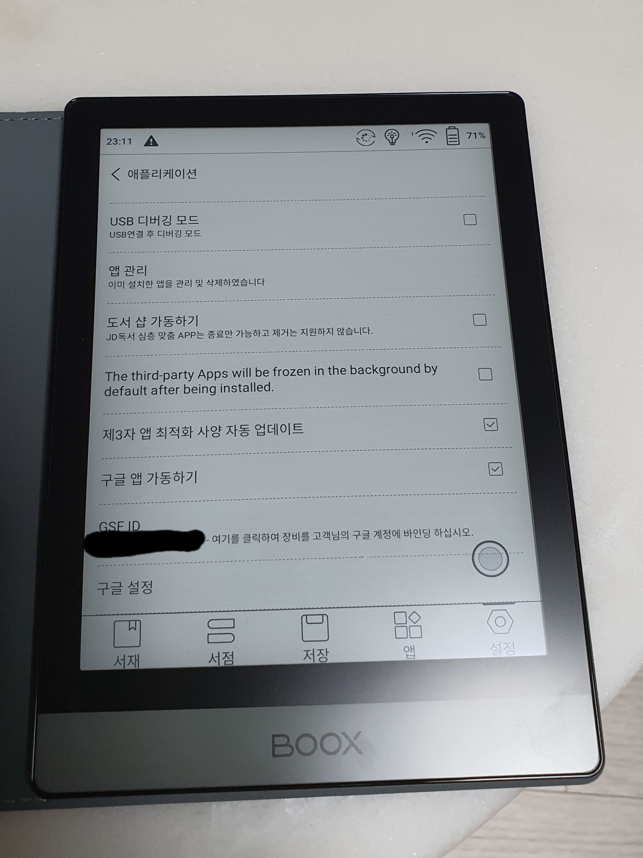 구글앱 가동하기를 누르면 GSF ID가 보인다.