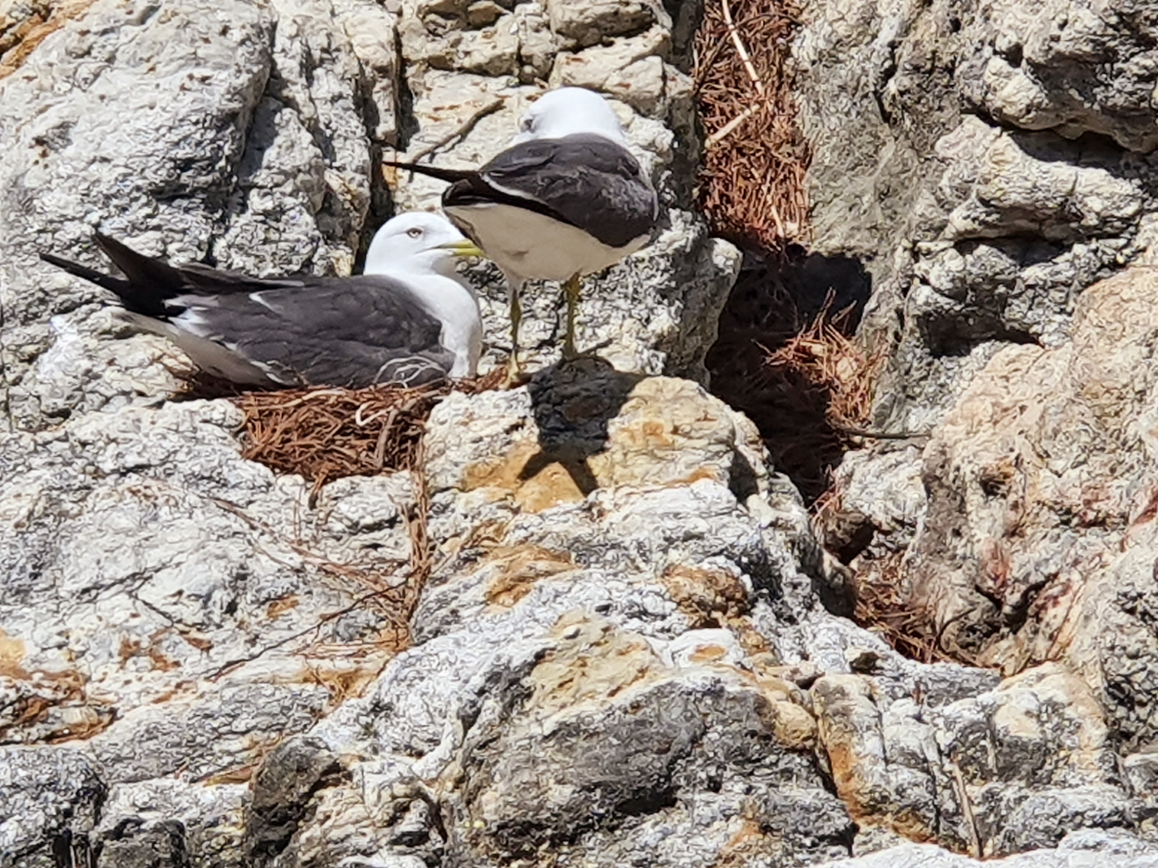 바위섬 한쪽에는 갈매기들이 둥지에서 알을 품고 있었습니다. 암컷은 열심히 포란을 하고, 수컷은 암컷을 챙기고 주변을 경계하는 것처럼 보였습니다. 5~6월쯤이 포란 기간인 듯합니다. 처음 보는 장면이라 무척 신기했어요.