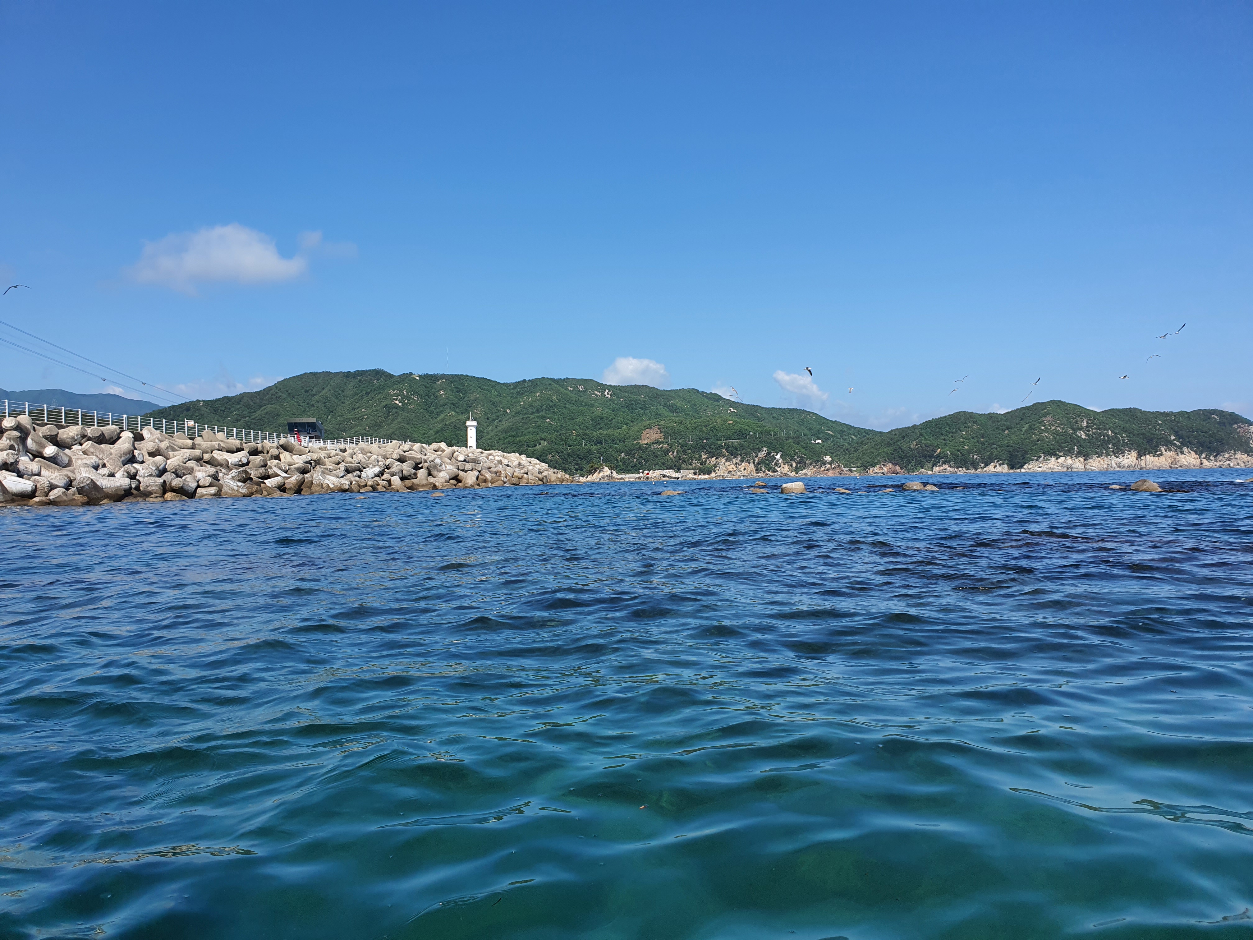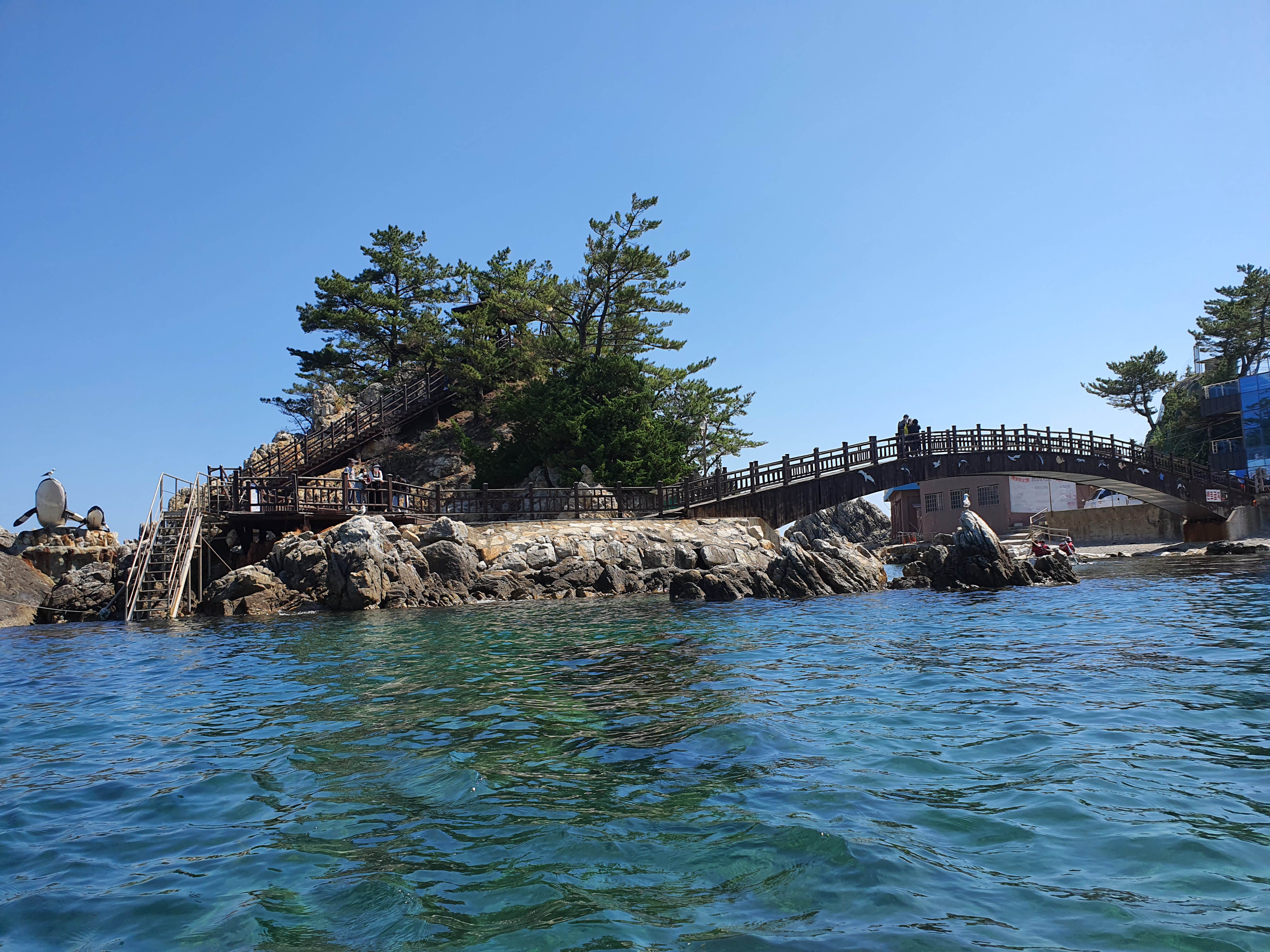 장호항의 시그니처라고 생각되는 작은 바위섬입니다. 스노쿨링 장소로 유명한 안쪽으로도 한 번 들어가 보았습니다.