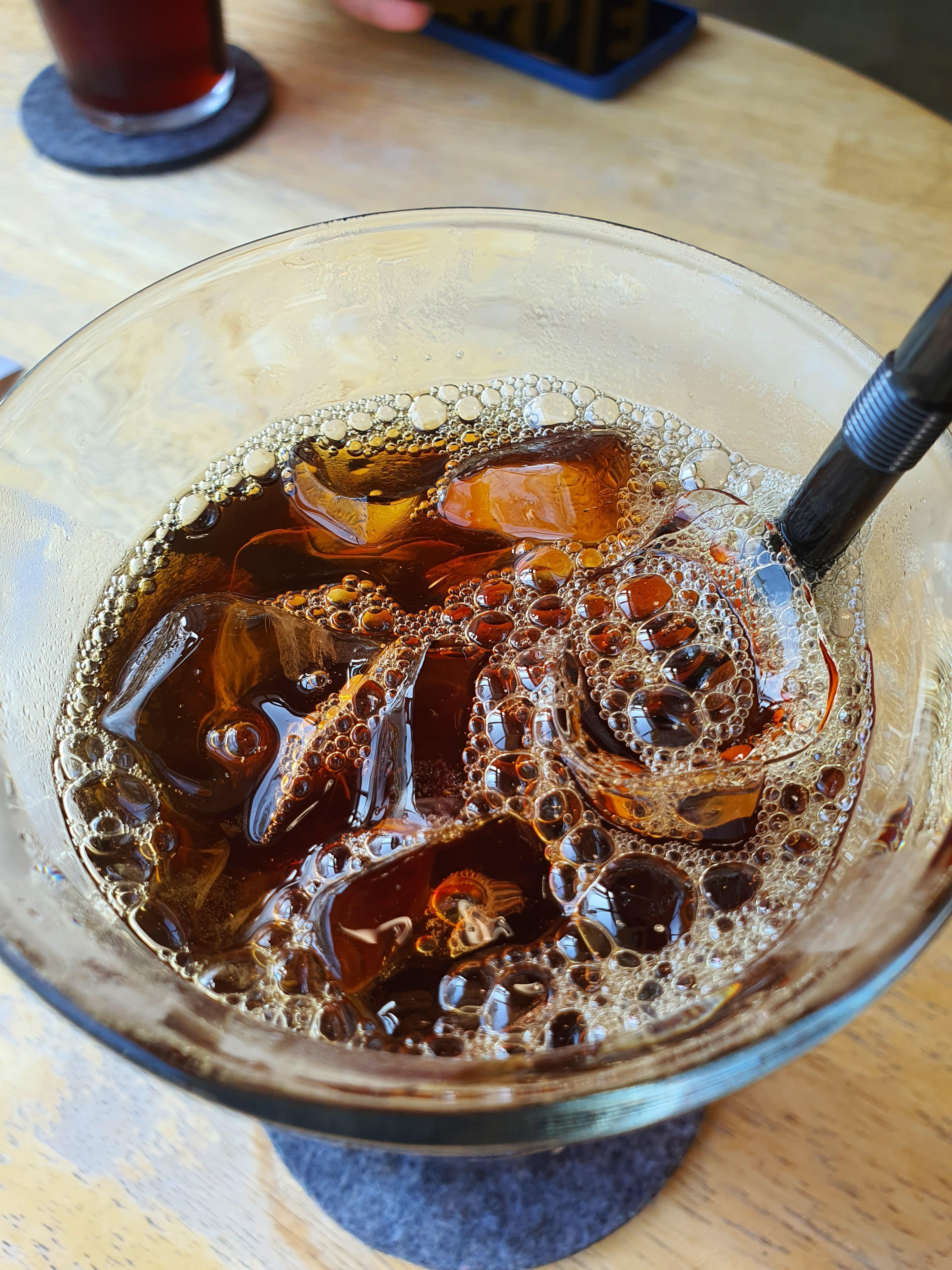 드디어 주문한 커피가 나왔습니다. 사진으로 보니 약간 콜라같기도 하네요. 브루잉 커피라 확실히 보통 카페보다는 훨씬 맛이 좋았습니다. 커피는 약간 연한 편이었는데, 늦은 오후여서 괜찮았던 것 같네요. 진하게 드시는 걸 좋아하시는 분은 에스프레소가 더 좋을 것 같습니다. 디저트가 없기 때문에 조금 아쉬울 순 있겠지만, 그래도 커피 본연의 맛을 즐기기에는 좋은 것 같아요.