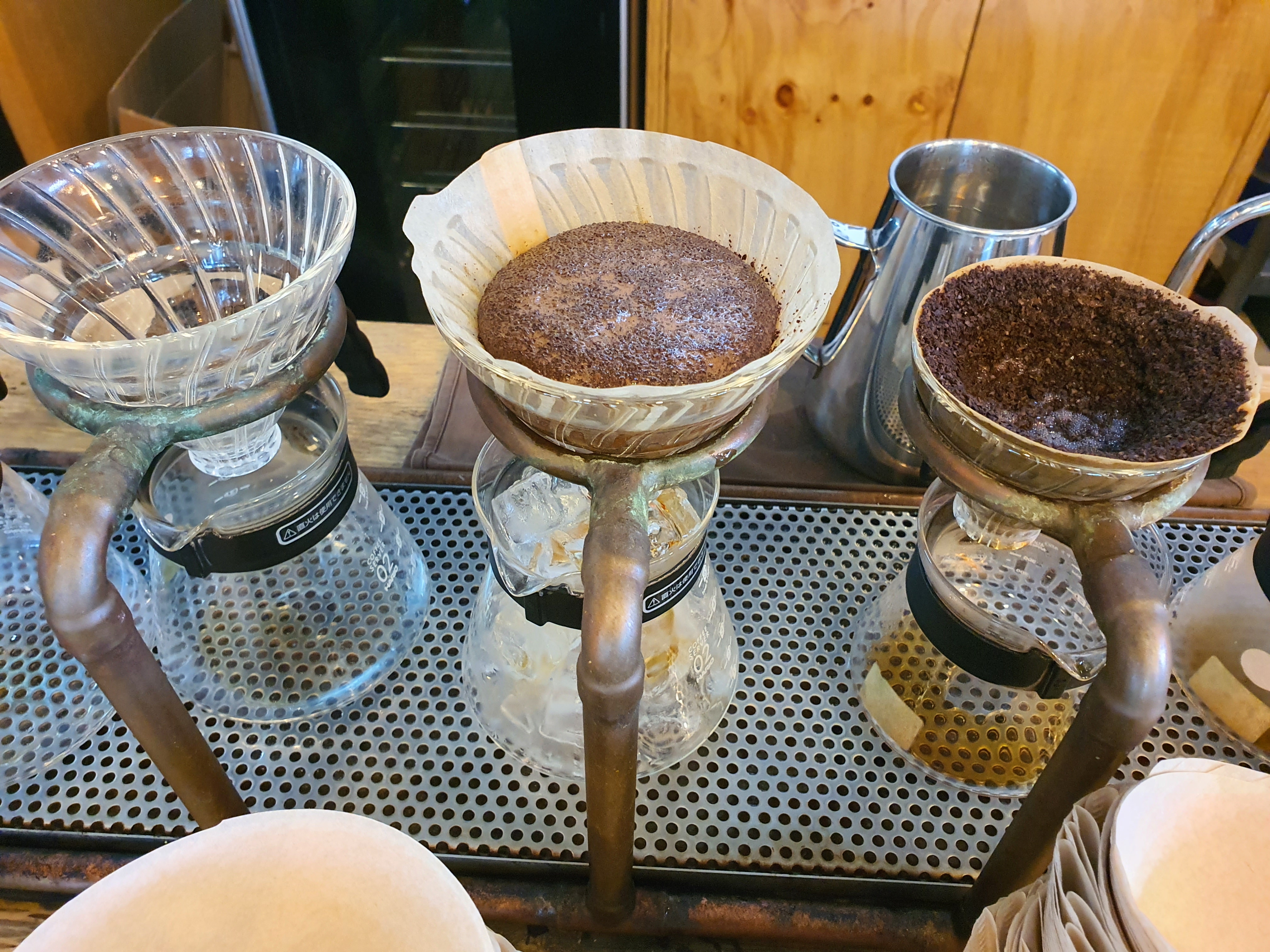 주문한 커피가 추출되고 있는 모습입니다. 예술가 아우라가 뿜뿜한 사장님이 시크한 모습으로 커피를 내려주셨어요.