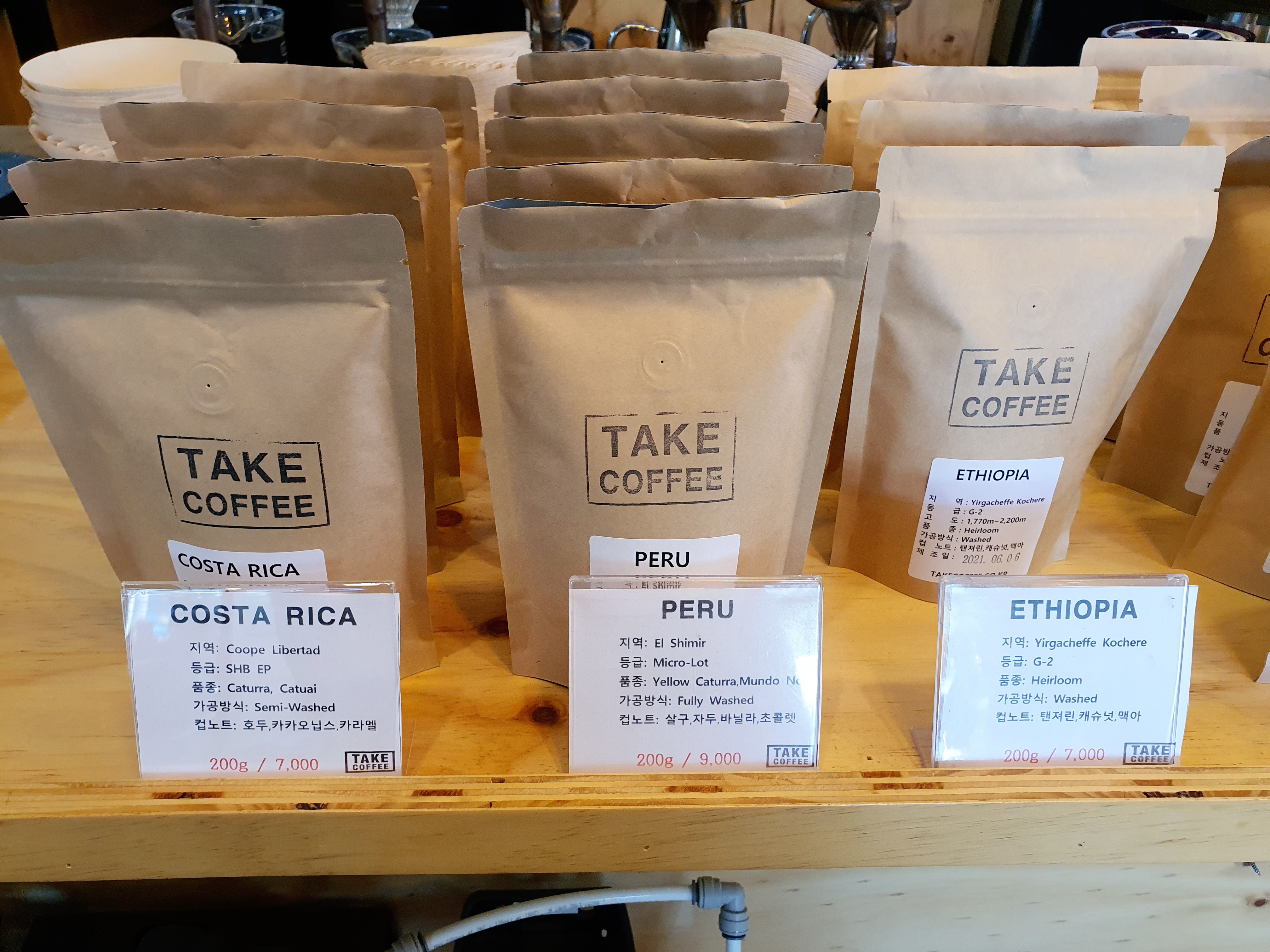 백운호수 주변처럼 많지는 않지만 음식점과 카페가 있습니다. 이 날은 테이크커피(Take Coffee)라는 스페셜티 커피를 파는 카페에 들러보았습니다.