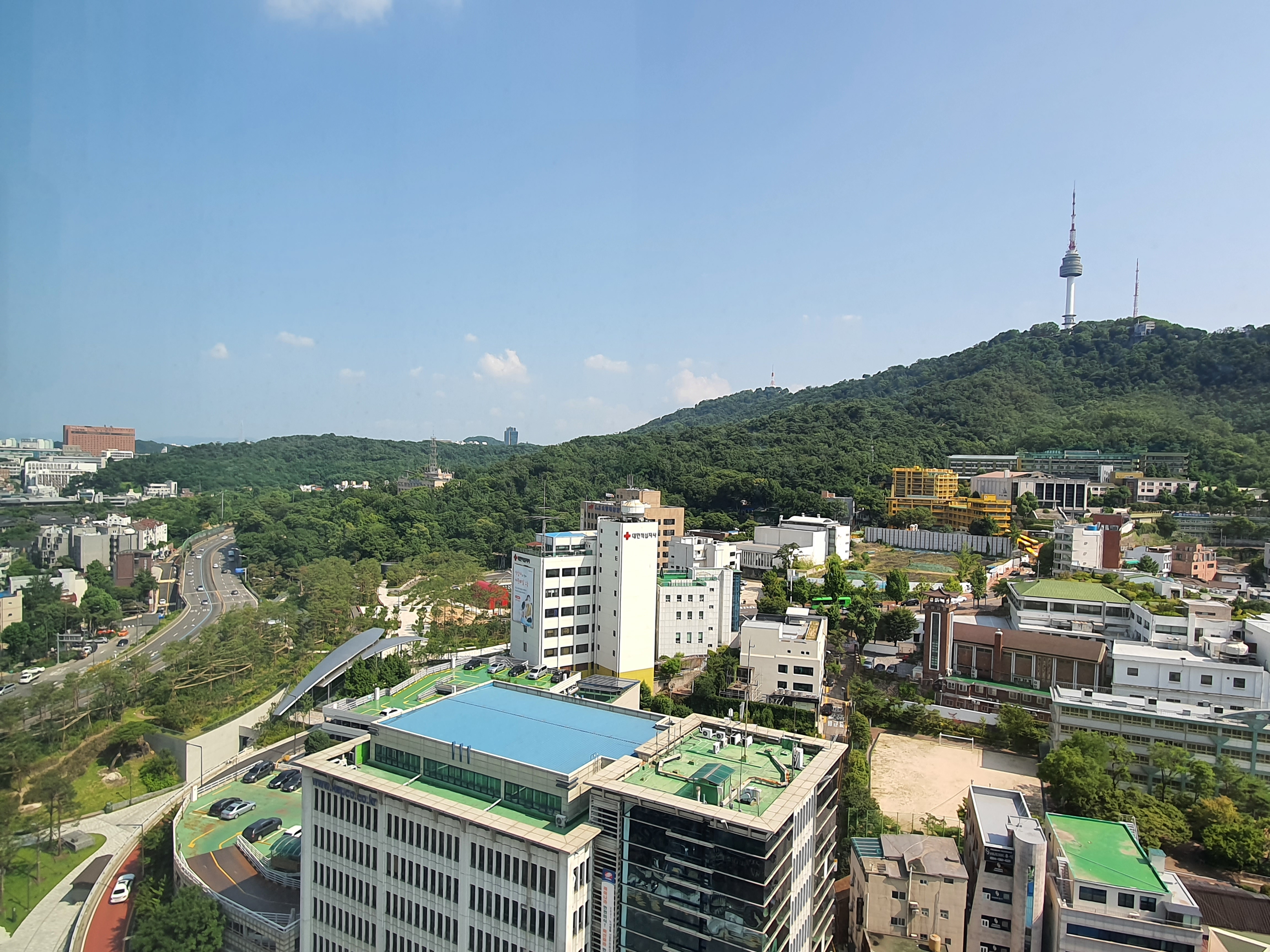 창밖으로 보이는 뷰입니다. 남산 뷰가 정말 멋지죠! 바라보기만 해도 엄청 힐링이 되었어요. 벚꽃이 피는 봄이나 가을에 와도 아주 예쁠 것 같습니다.