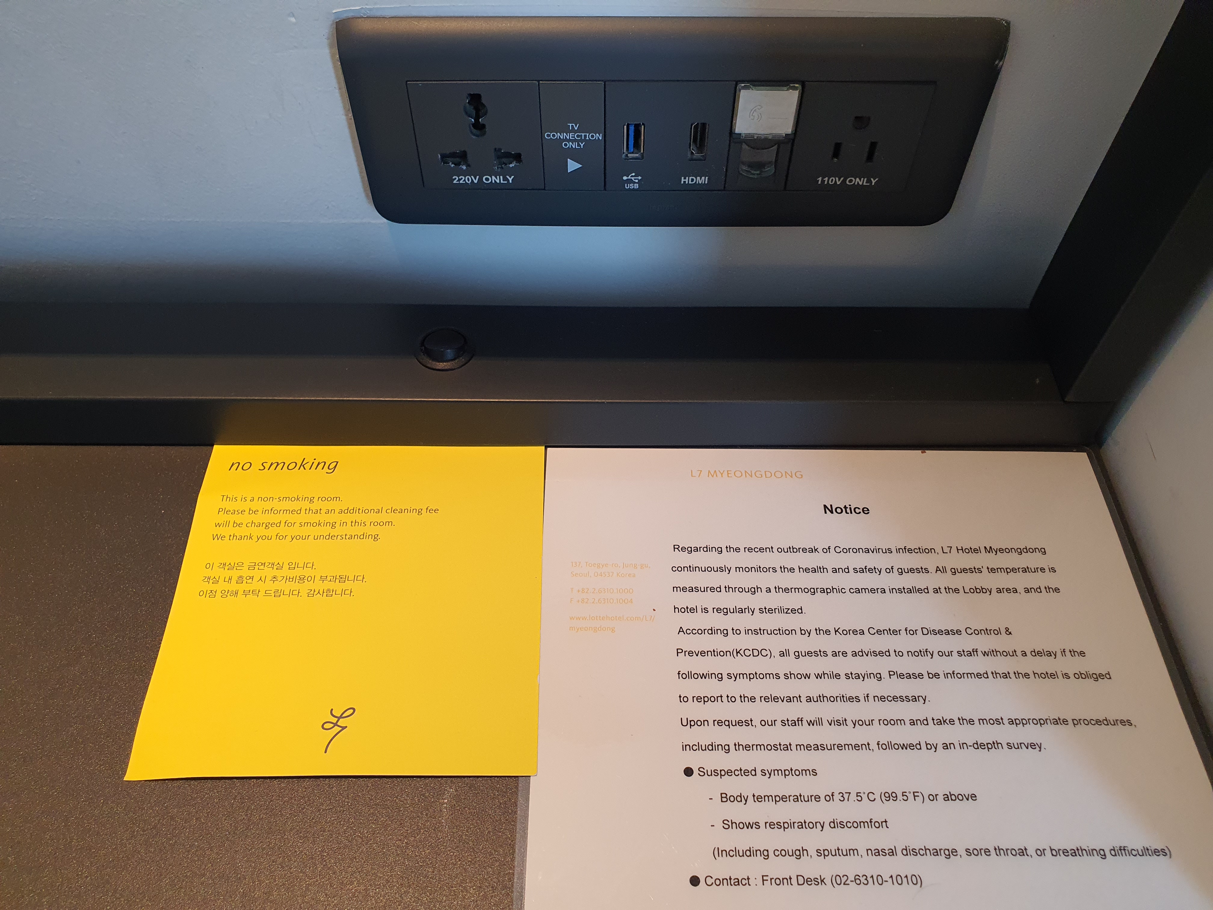 L7 명동 바이 롯데호텔은 약간 젊은 층을 타겟으로 하는 호텔이다 보니, 인테리어도 강렬한 노란색의 톡톡 튀면서 모던한 느낌이 강했습니다. 직원들도 젊고 활기찬 느낌이 들었네요. 무척 친절하기도 했고요.
