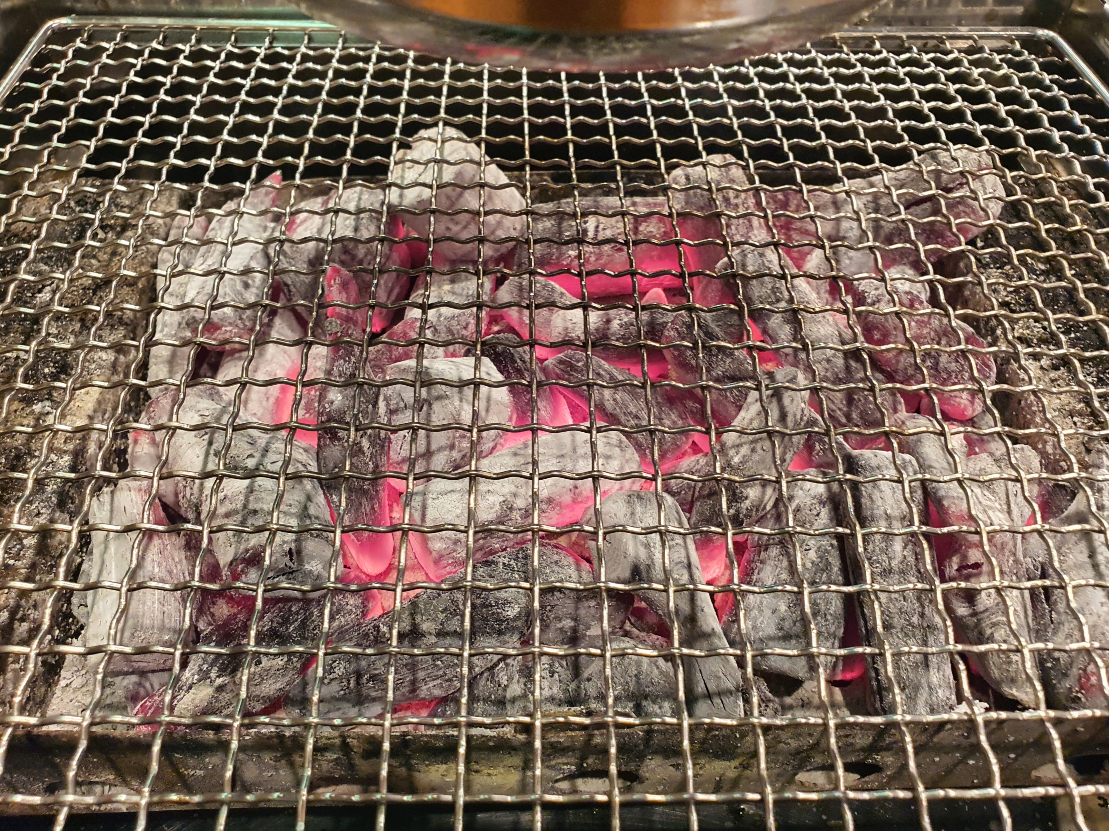 대나무 숯을 써서 길쭉한 모양이에요. 대나무 숯은 처음 보는데 열기가 엄청 뜨거웠습니다.