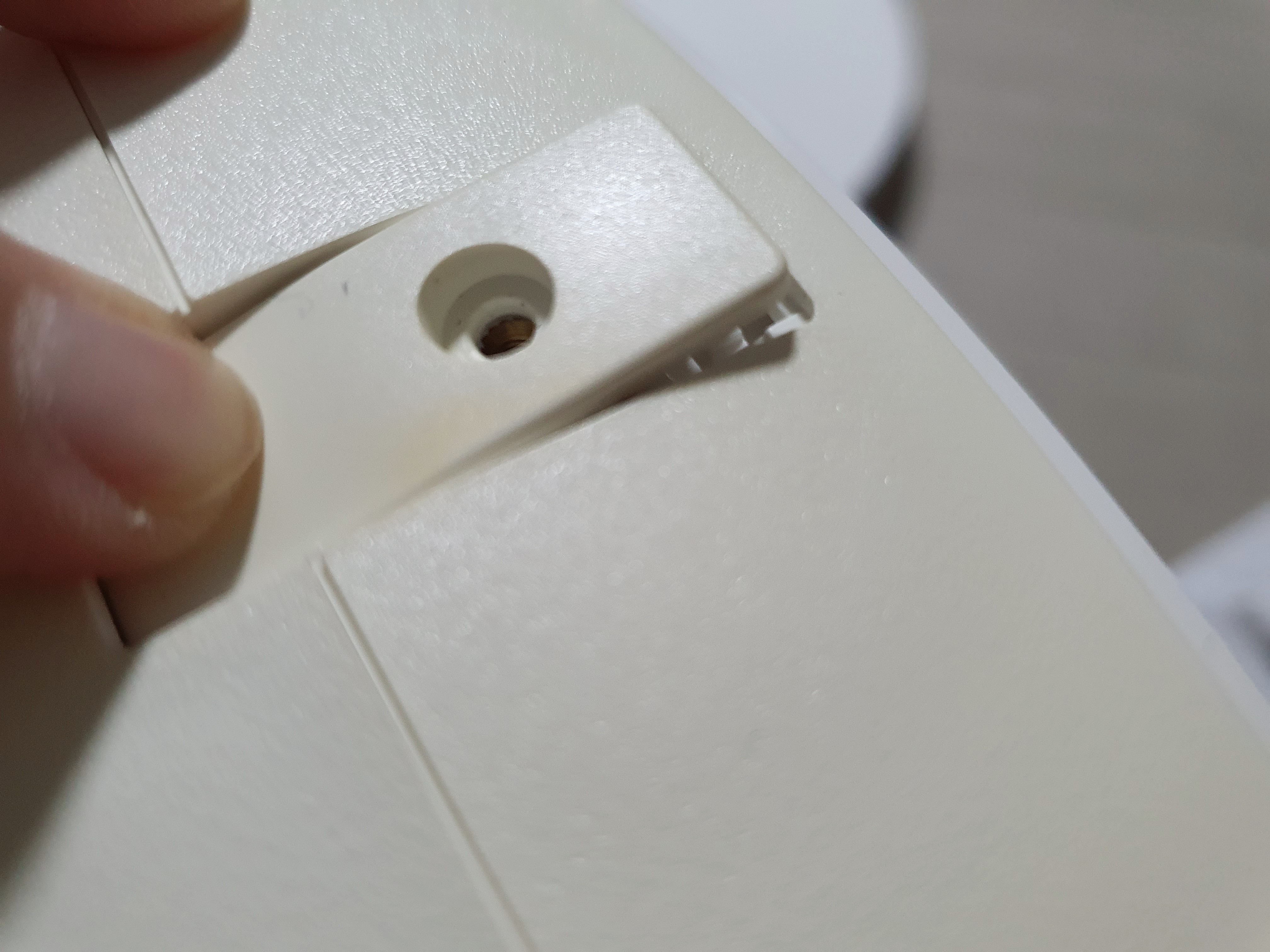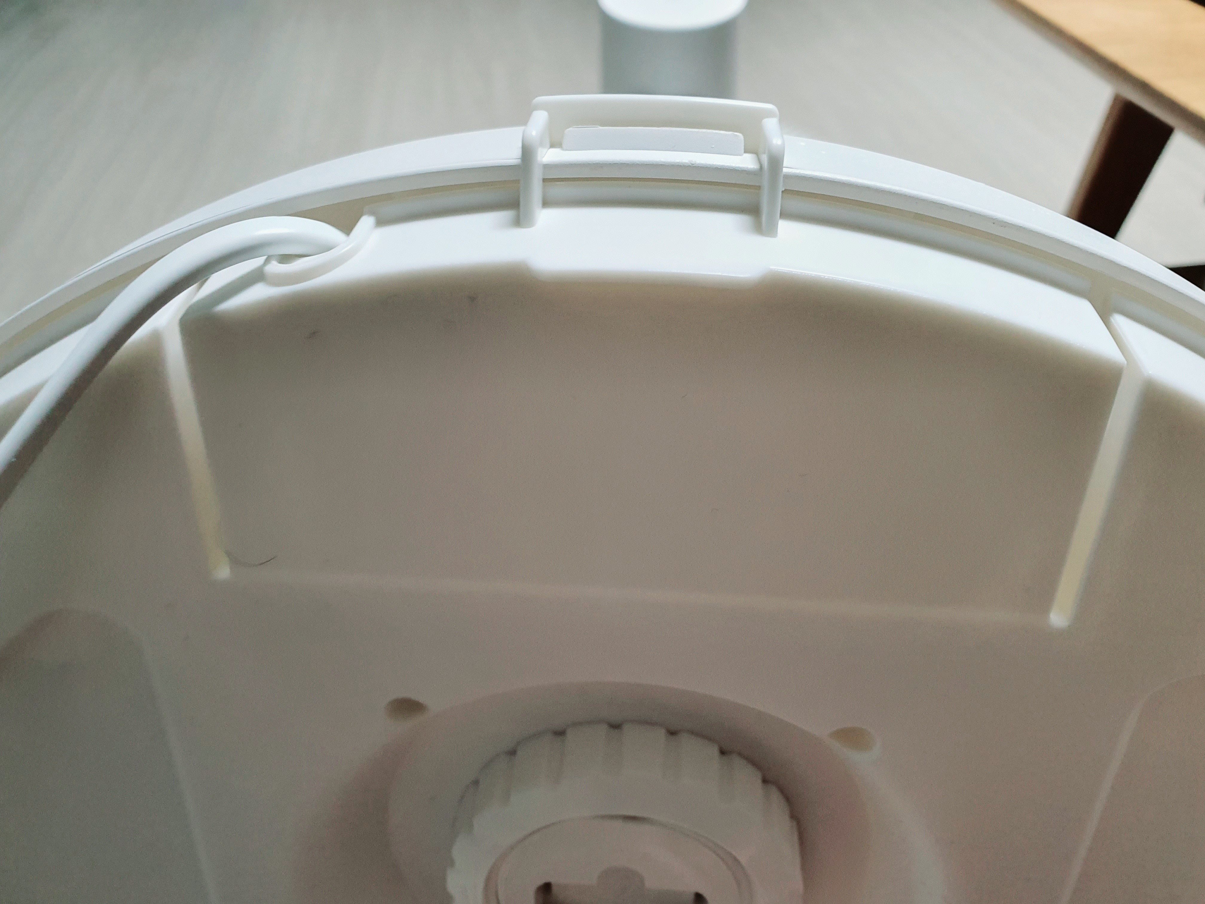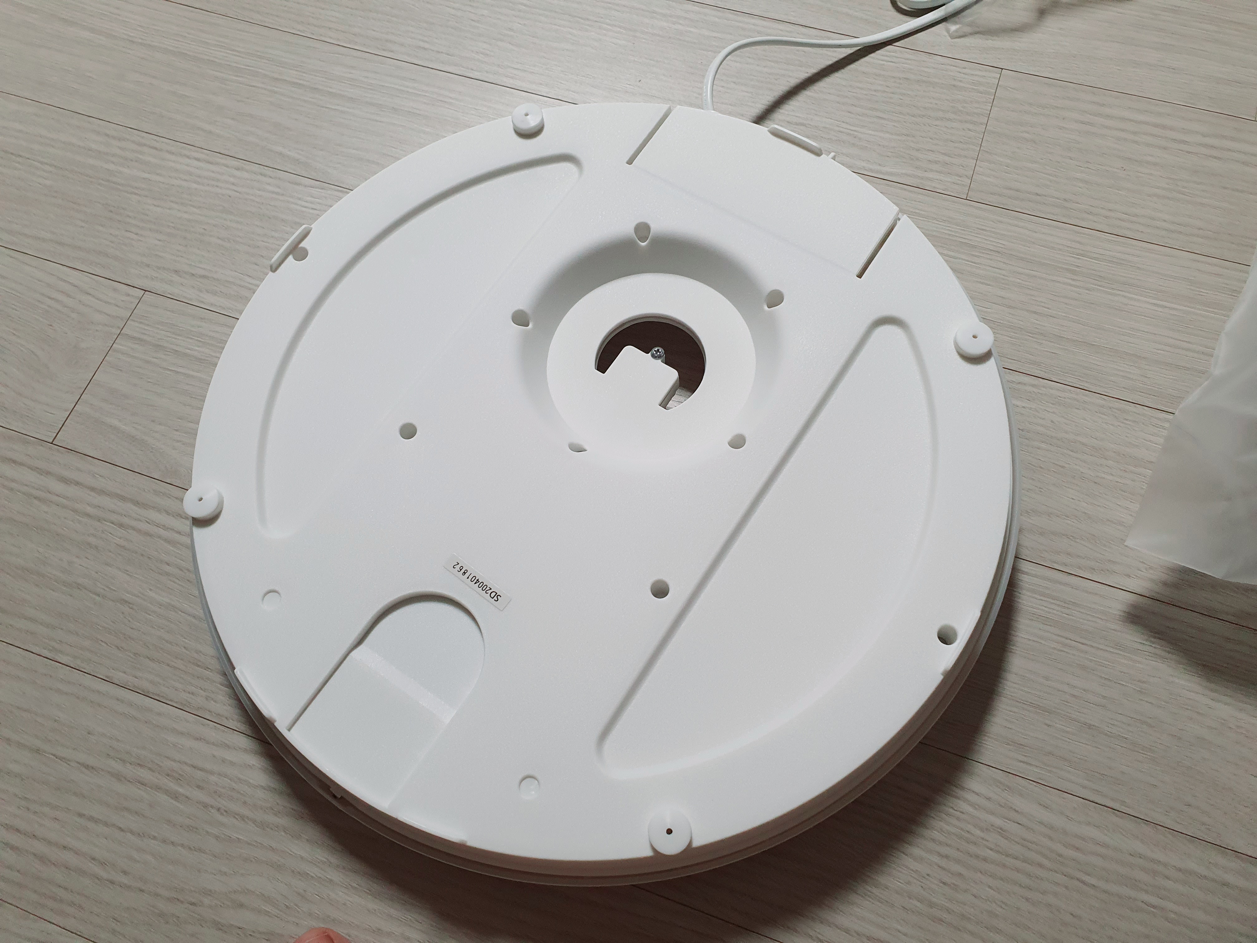 본체 뒷면입니다. 본체 윗면과 달리, 바닥면의 촉감은 3D 프린터에서 뽑아낸 것 같은 저렴한 느낌이 듭니다. 한쪽에는 전선을 보관하는 부분이 있습니다.