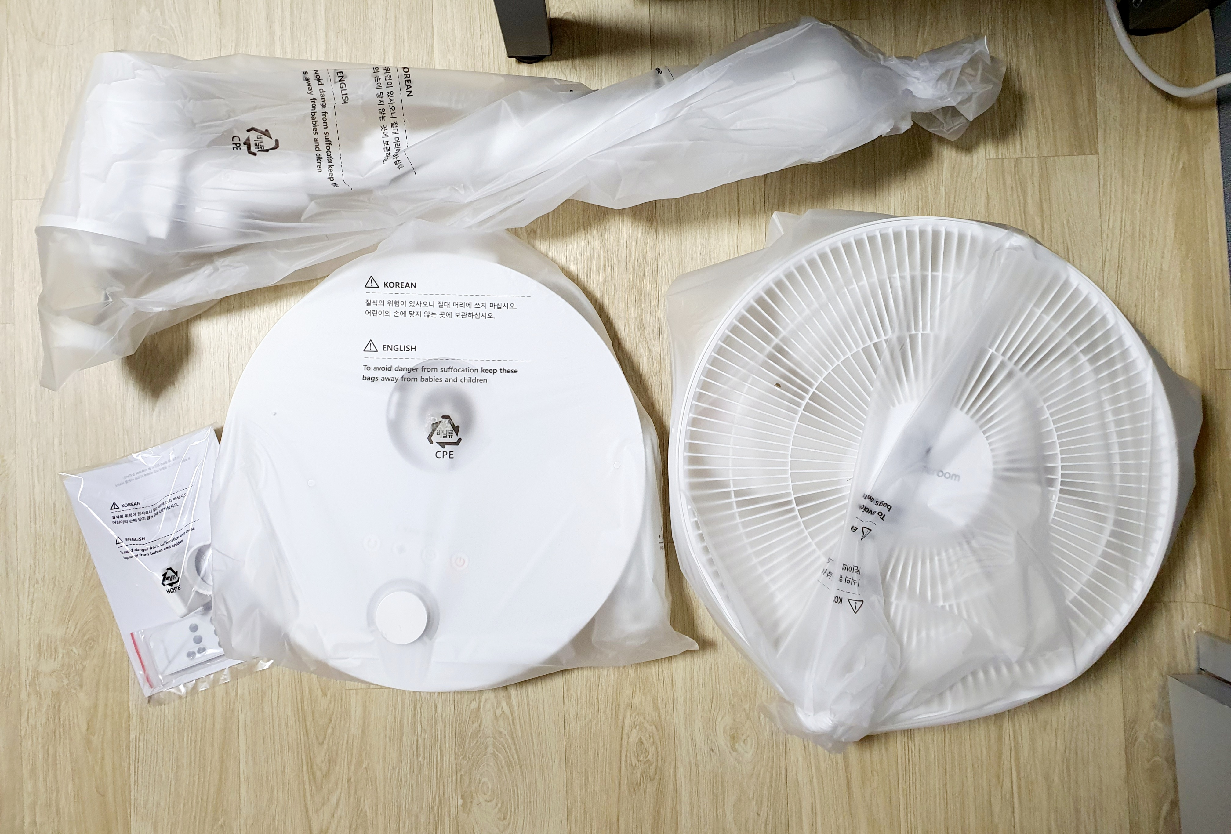 선풍기 구성품은 심플합니다. 본체, 기둥, 헤드, 그리고 설명서와 리모콘입니다. 부품이 너무 가벼워서 부실하지 않을까 걱정이 되었습니다.