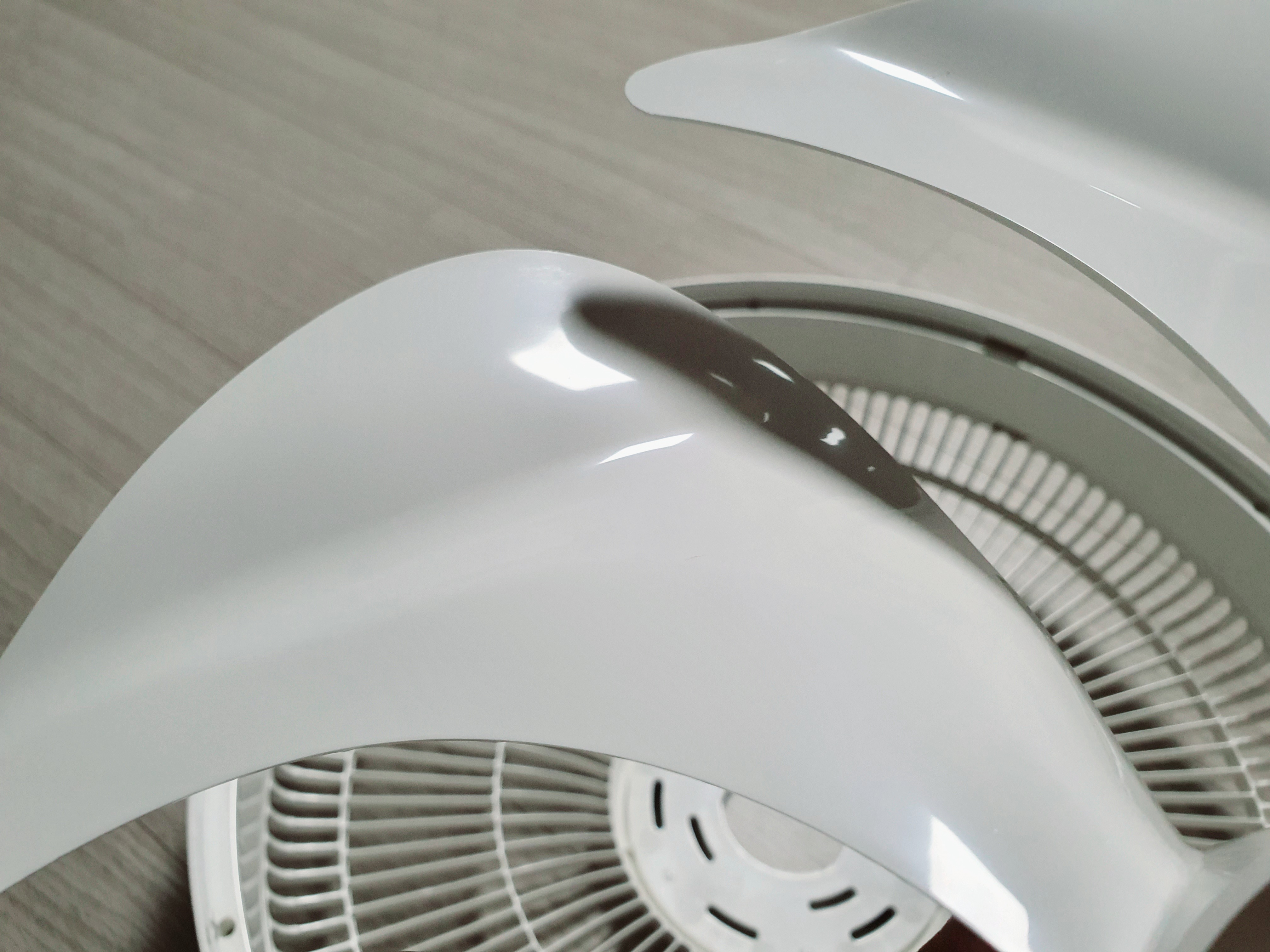 날개는 보통 선풍기처럼 반투명한 스타일이 아니라, 새하얗고 반질반질합니다. 어디서 많이 본 느낌이다... 싶었는데, 한참 생각해보니 무인양품 선풍기와 많이 닮은 것 같습니다.