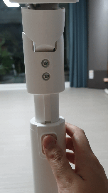 처음에 기둥 뒷부분을 누르면 선풍기가 휙 하고 자라났습니다. 근데 며칠 사용하다 보니 이제는 눌러도 그대로네요. 길이가 꽤 길어서 마음에 듭니다.