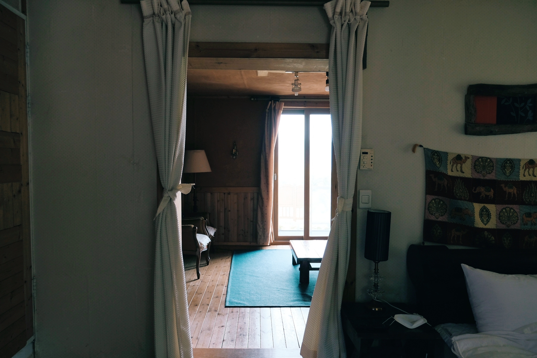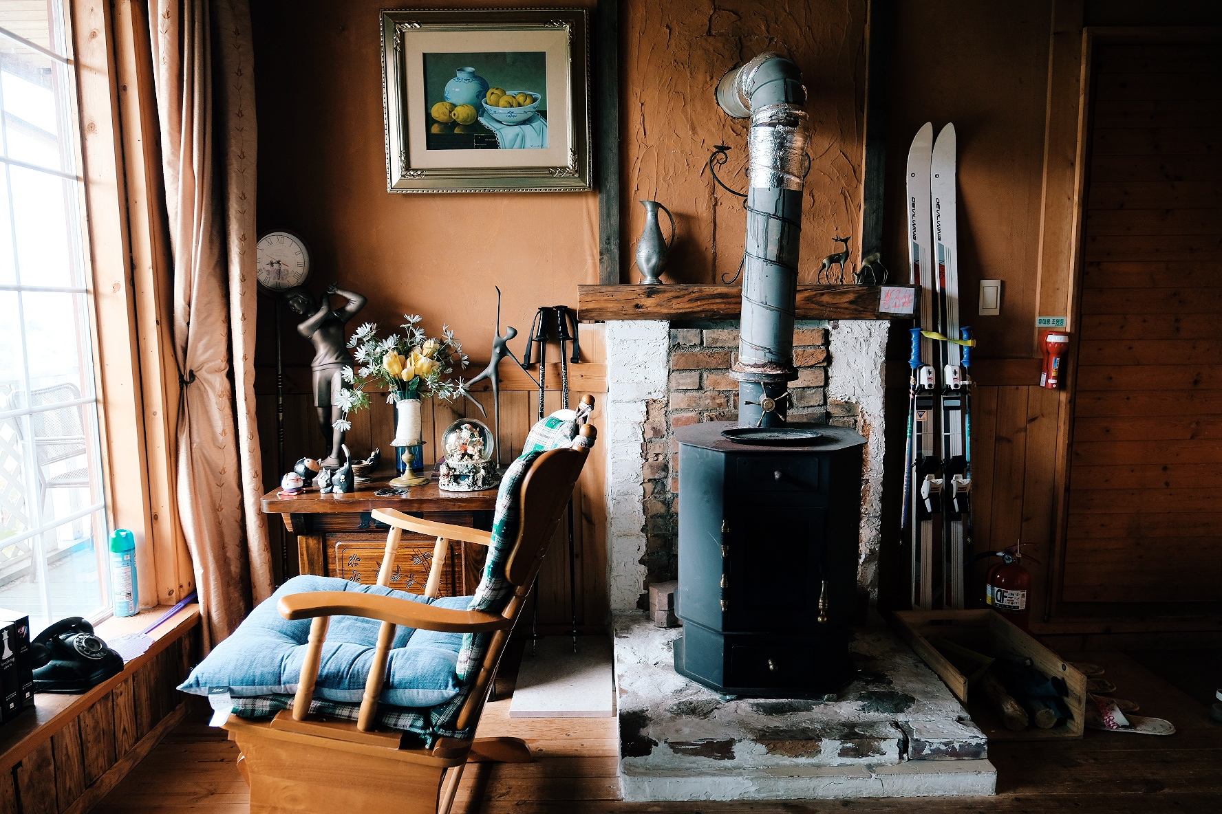 내부는 정말 빈티지하면서 산장 느낌이 물씬 납니다. 펜션에 들어가자마자 오래된 나무냄새가 나요(펜션 특유의 고기 찌든내 아님). 창틀 앞에 놓인 멋진 흔들의자가 유럽갬성의 끝판왕인 것 같아요.