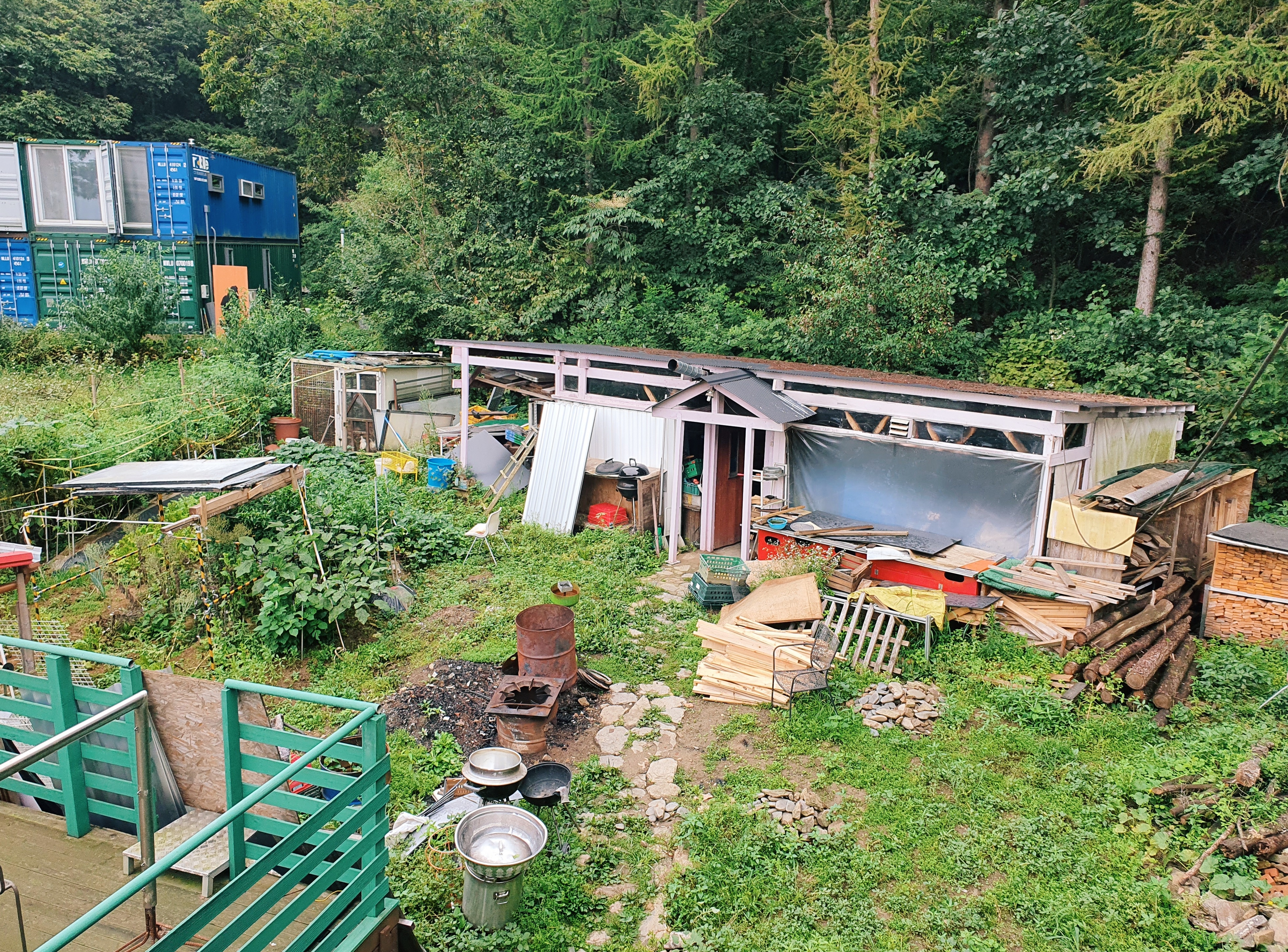뒷마당은 직접 가보진 않고 펜션 2층에서 사진만 찍었는데, 텃밭 겸, 사장님의 제작소(?) 겸, 창고 겸, 닭과 거위의 집인 것 같아요.