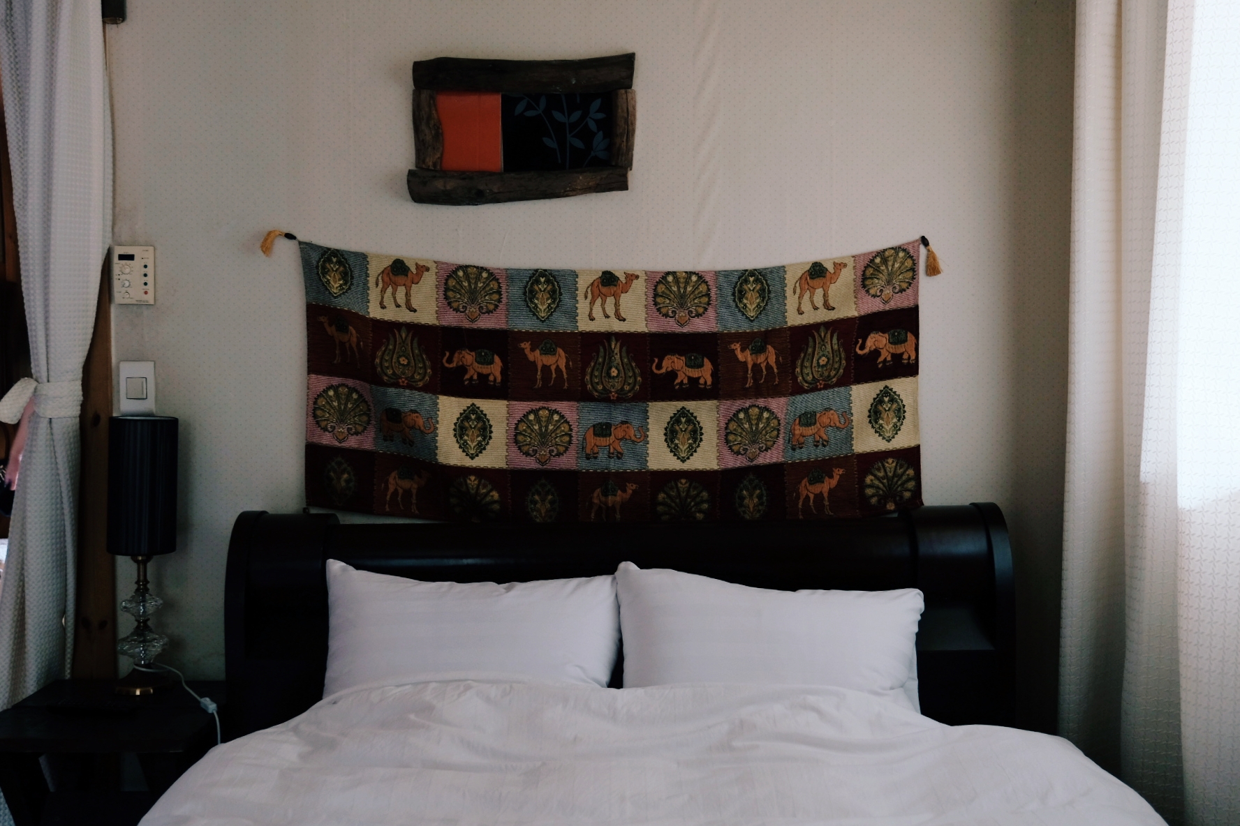 침대는 무난했습니다. 푹신하진 않았어도 매트리스가 꺼지지 않고 편안했어요. 침구도 깨끗하게 잘 관리되는 것 같았습니다.