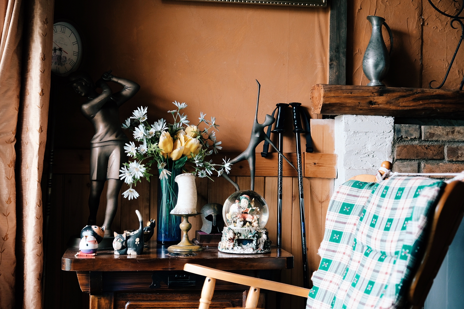 벽난로 맞은 편에는 고풍스러운 의자 2개가 놓여있습니다. 그 뒤에는 창호지문이 은근한 존재감을 뽐내고 있는데요, 유럽식 소품들 틈에서도 잘 어우러지더라고요.