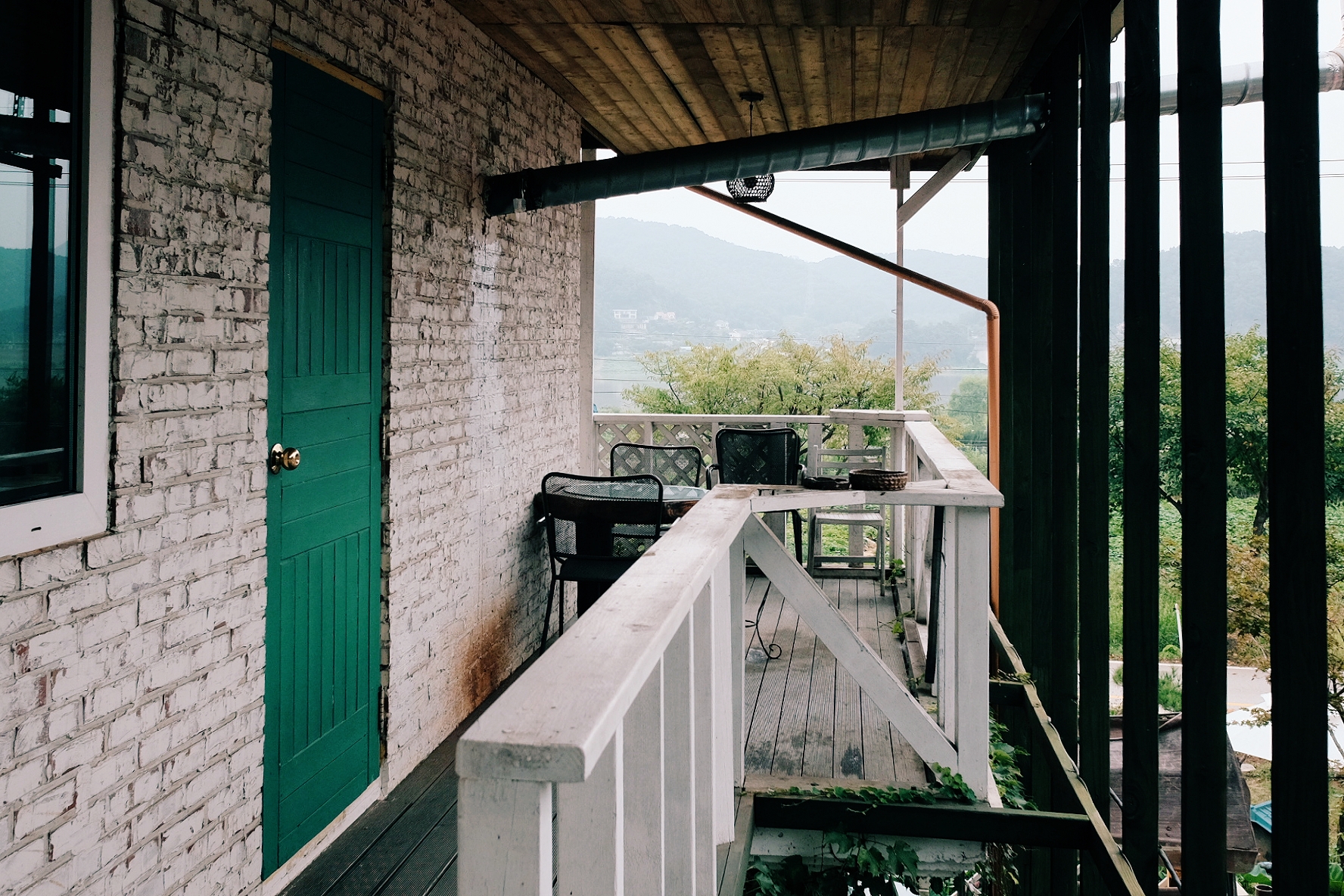 예쁜 초록색 문이 인상적이었어요. 그리고 바로 옆에 바베큐 장소가 있었습니다.