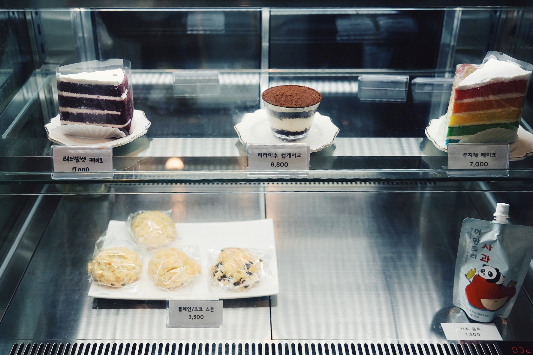 음료 가격은 무난한데, 케이크는 가격이 조금 비싼 것 같긴 합니다. 뷰가 좋은 카페는 어디든 음식 값이 다소 높게 책정되는 것 같습니다. 리뷰를 보니까 크로와상도 있던데, 평일 오전에는 매대에 보이지 않았네요.