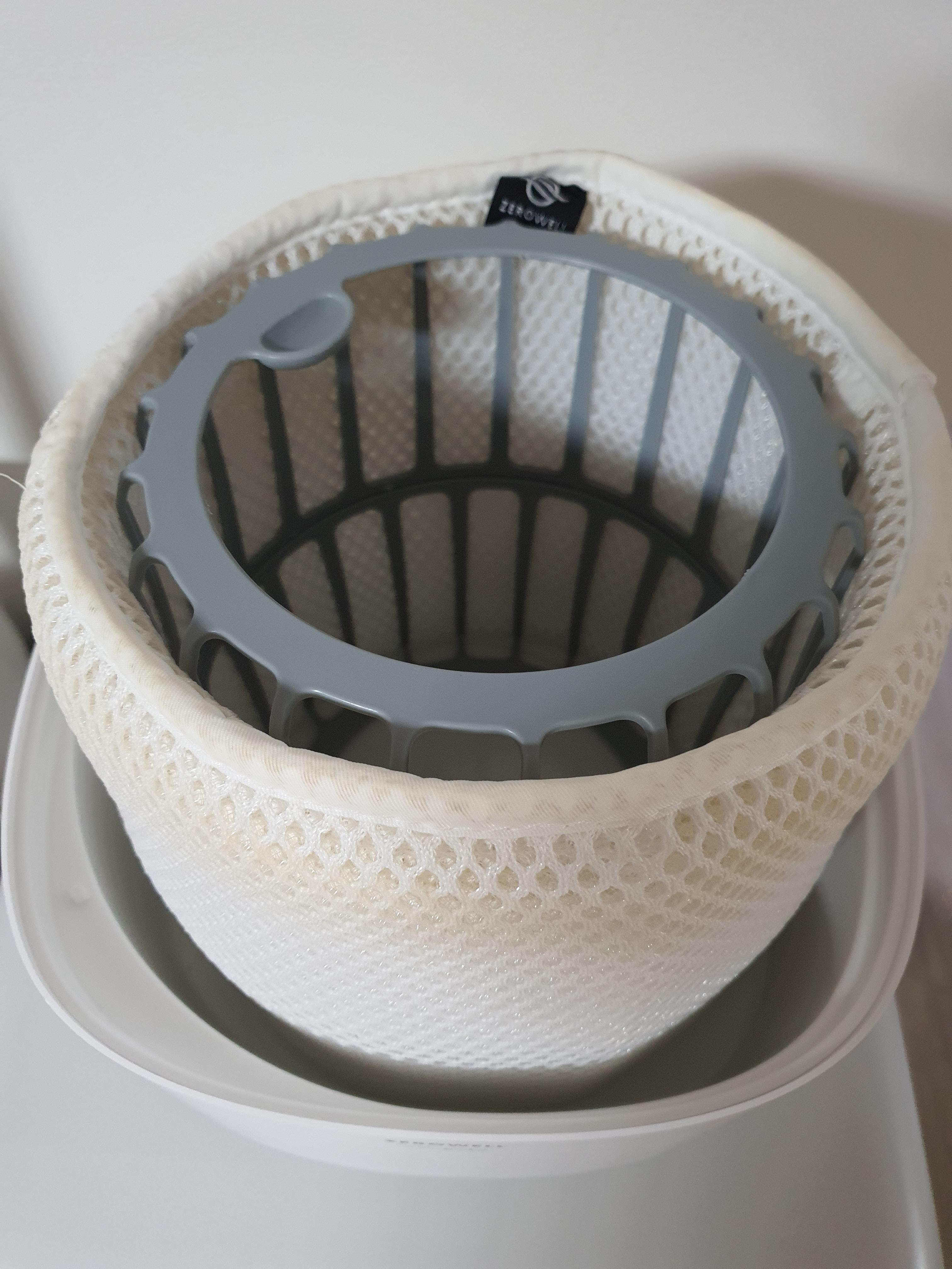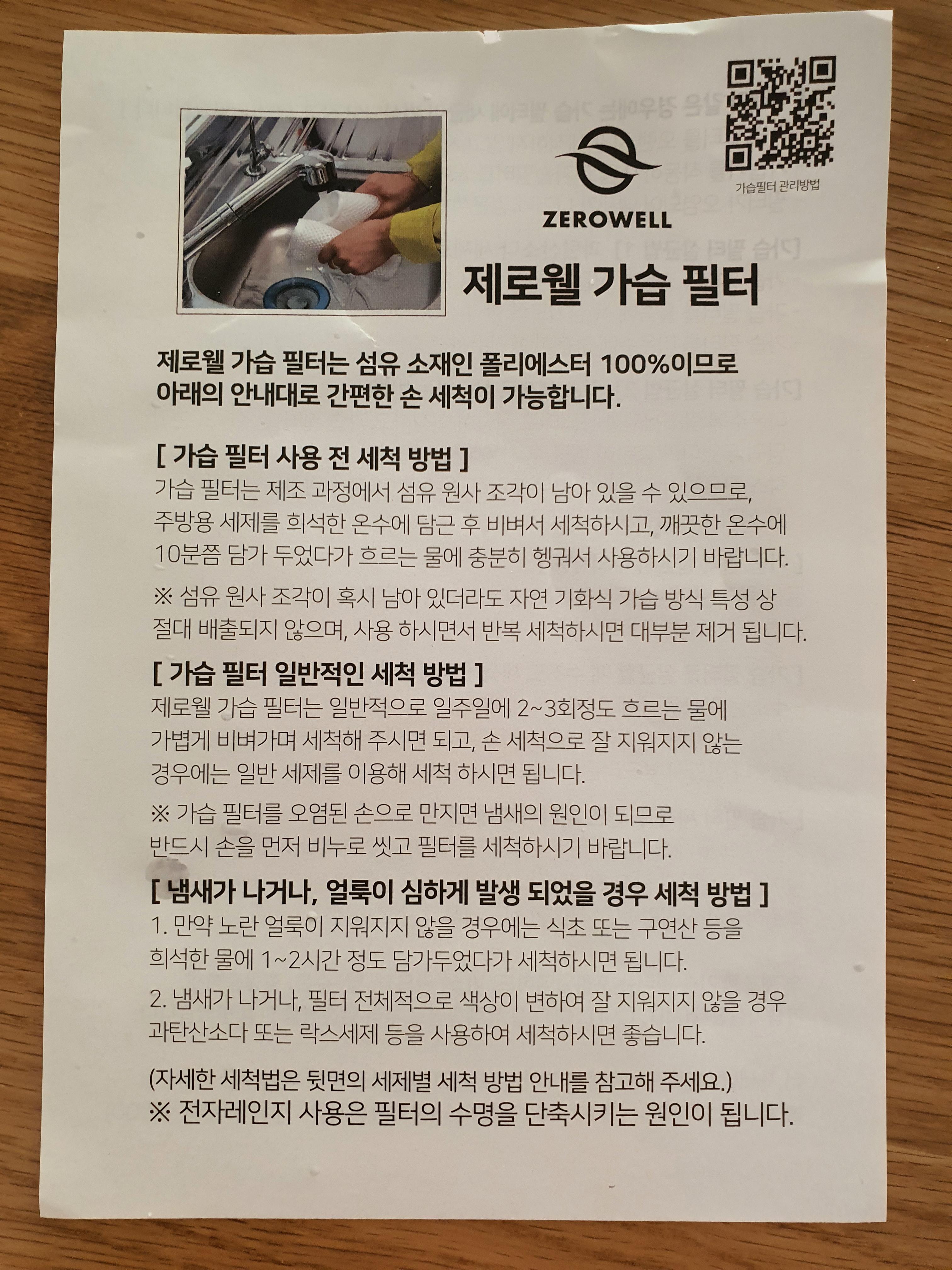처음 사용할 때에는 주방용 세제를 희석한 온수에 담근 후 비벼서 세척하라고 합니다. 오른쪽 사진은 아주 열심히 필터를 빨아서 세팅한 모습입니다.