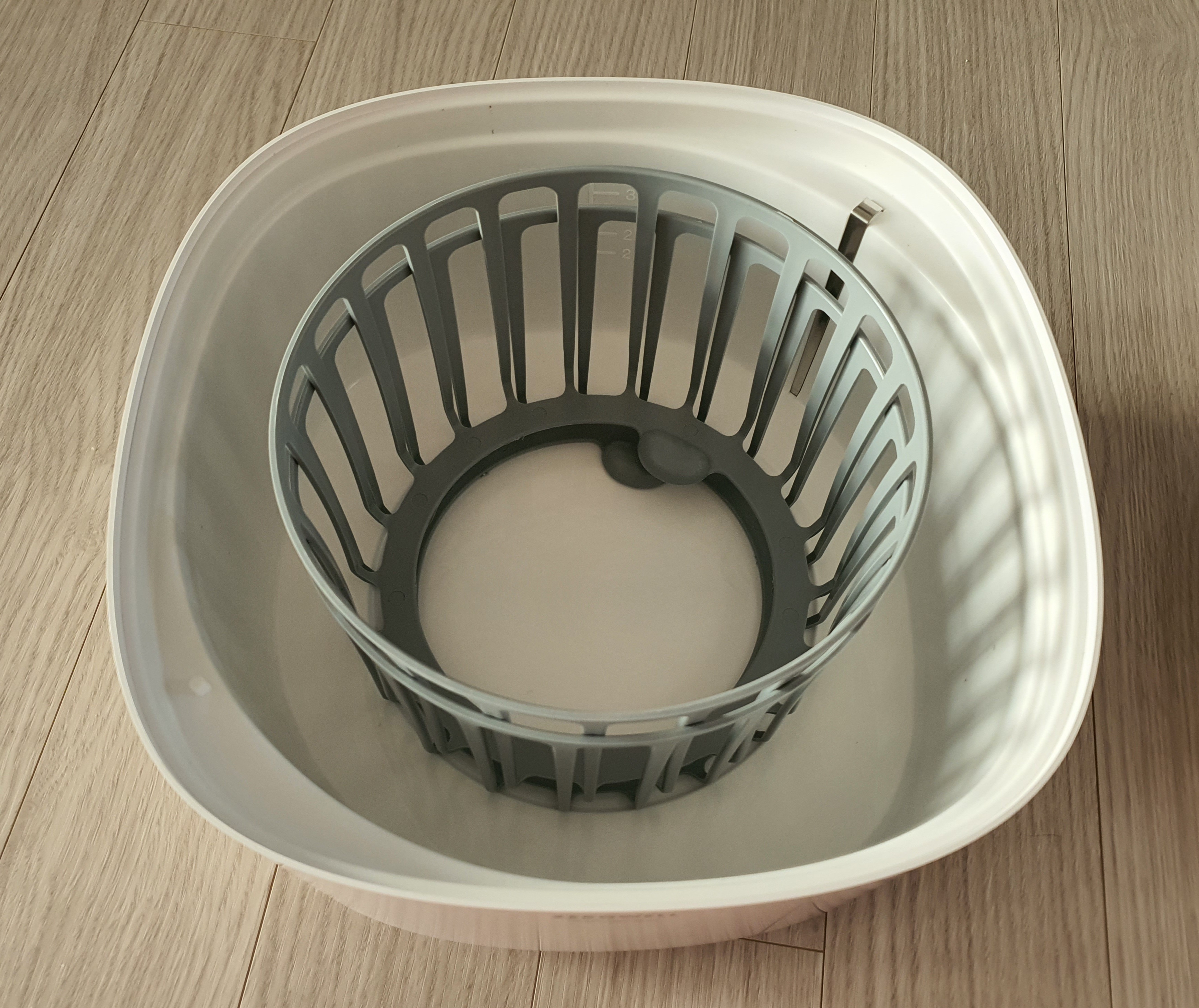 본체 상부를 들어올리면, 하부 물통과 분리됩니다.