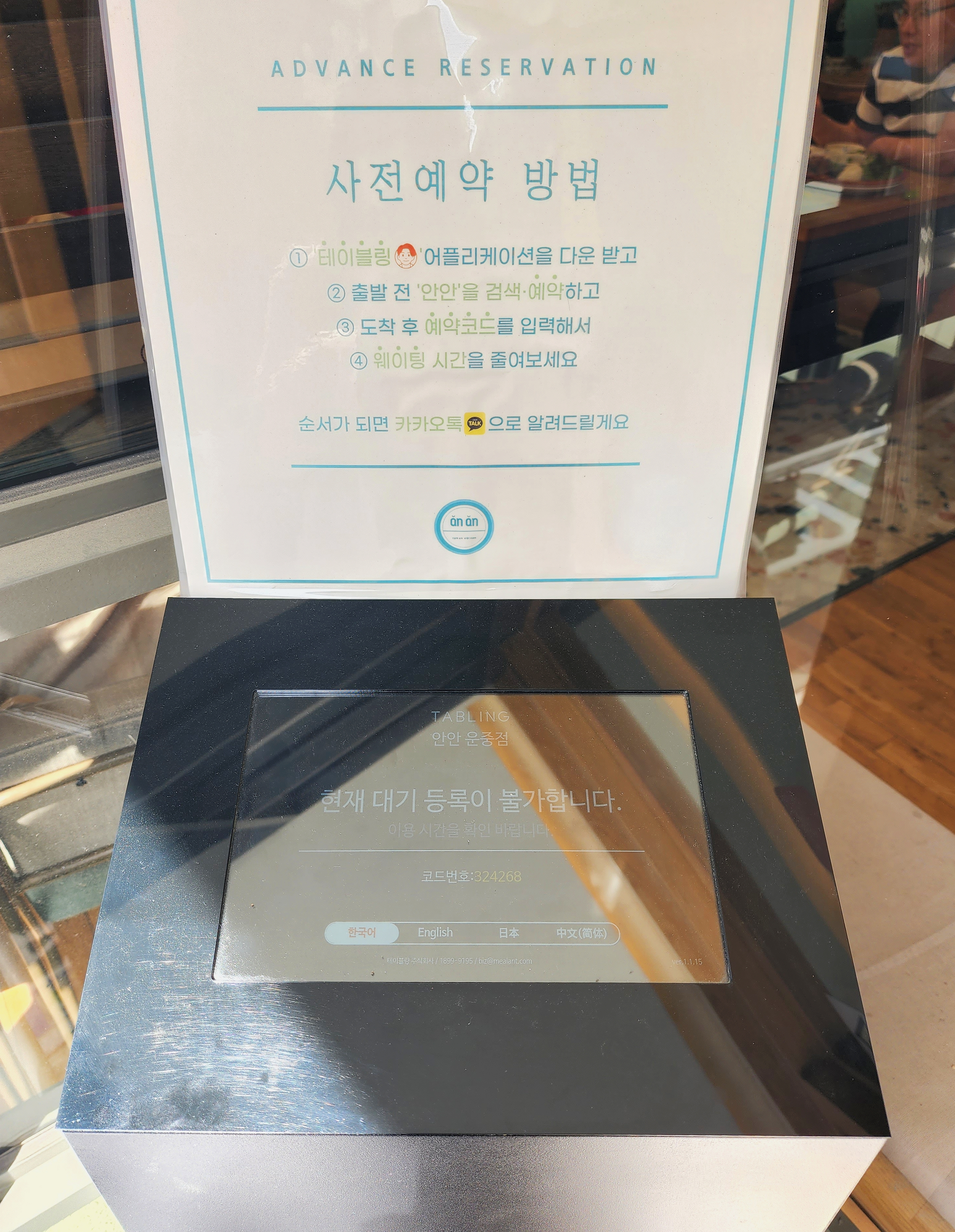 사전 예약도 가능한데요, 테이블링 애플리케이션을 다운로드하여 출발 전 '안안'을 검색 예약하고, 도착 후 예약코드를 입력해서 웨이팅 시간을 줄일 수 있다고 합니다.