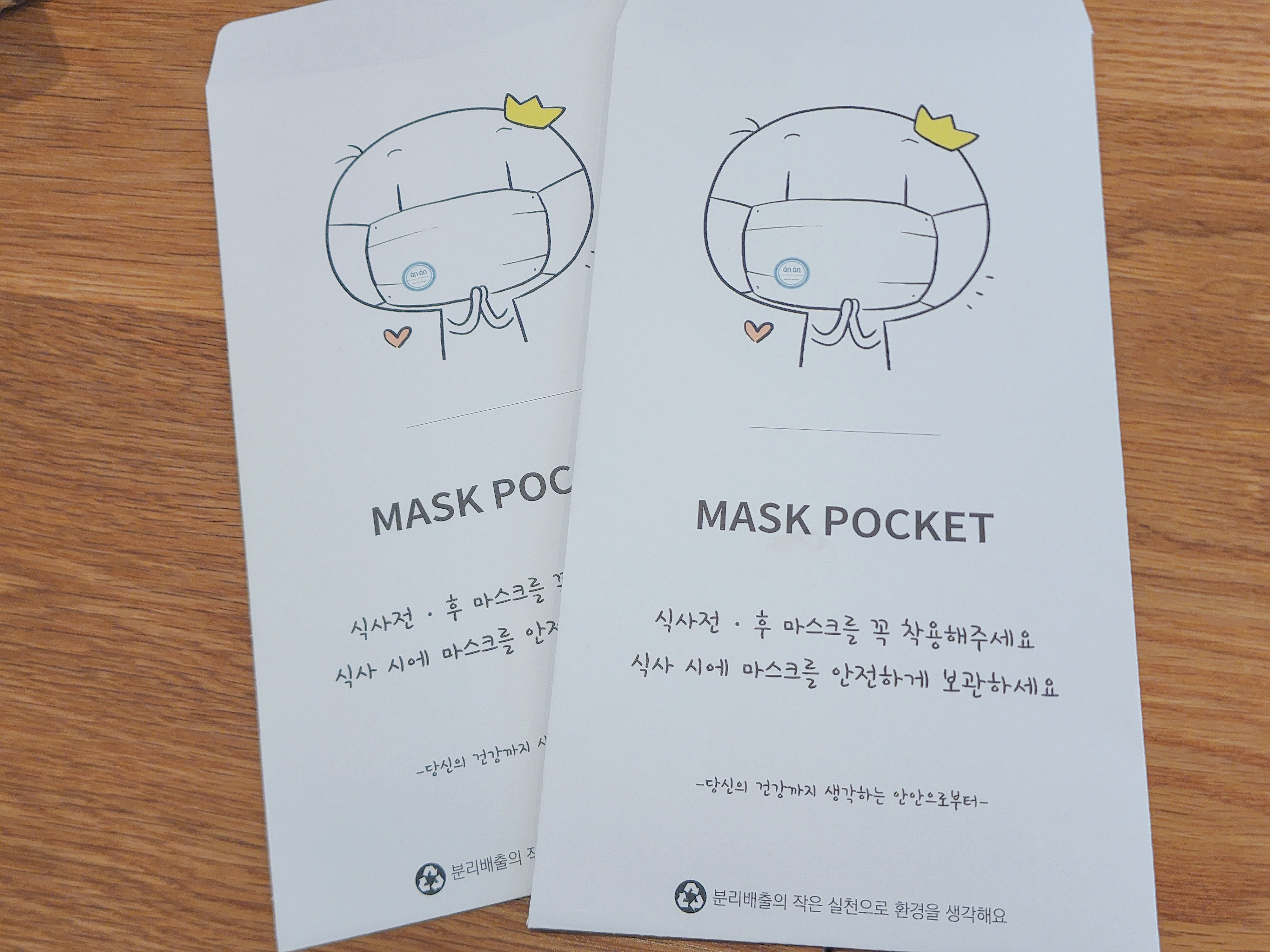 자리에 앉자, 따뜻한 차와 함께, 귀여운 마스크 포켓을 주셨어요. 15시 30분까지 식사를 할 수 있다고 해서 마음이 살짝 조급하긴 했습니다. 그래도 빨리빨리 세팅해주시고 음식도 10분 만에 나왔습니다.