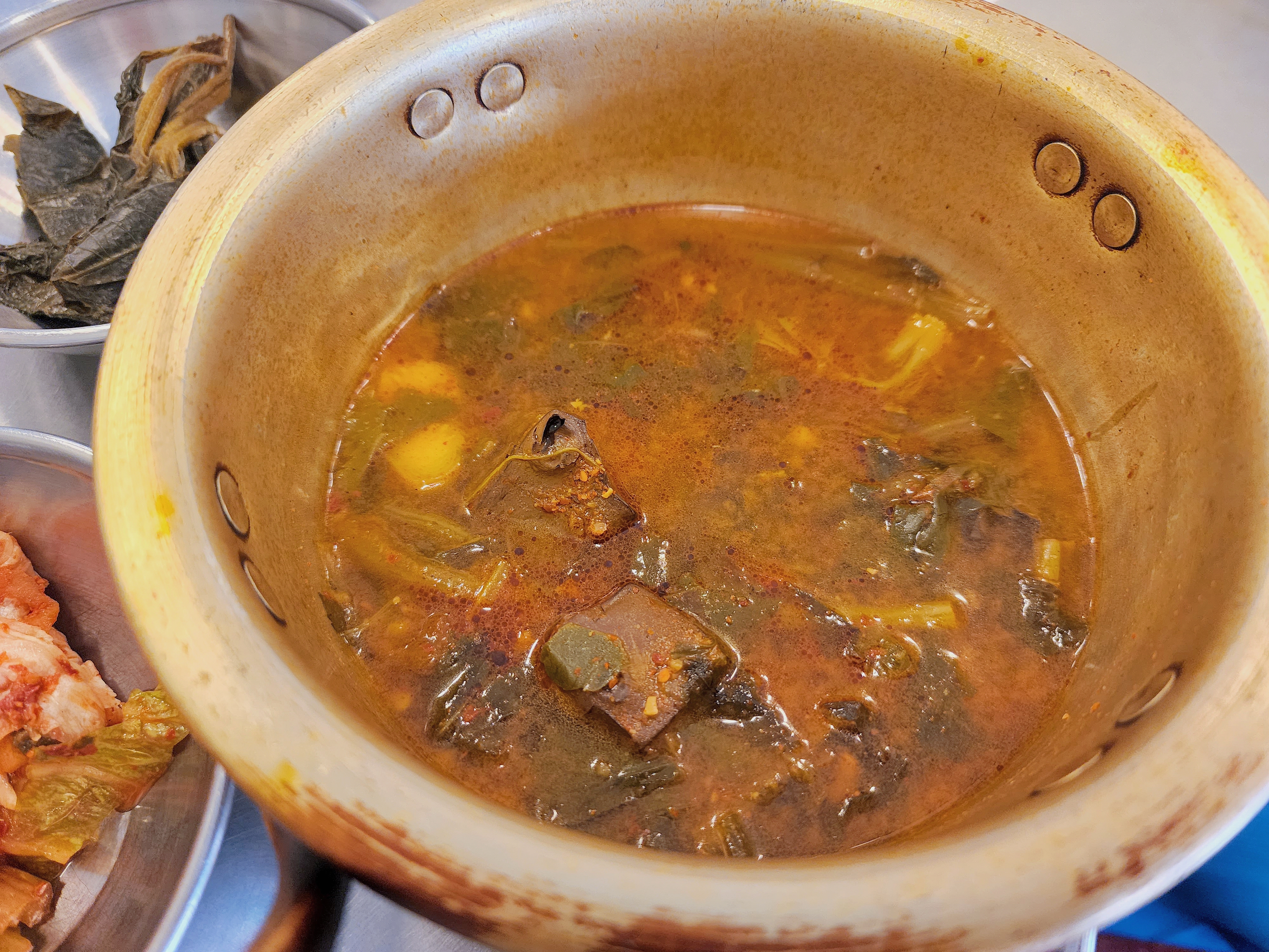 밑반찬으로 나오는 선지해장국입니다. 선지가 아주 탱글탱글하고 맛있었어요. 사장님 부부가 저희 부모님 나이대와 비슷해서 그런지, 해장국은 집에서 만든 음식 같은 맛이 났습니다. 정말 맛있었네요.