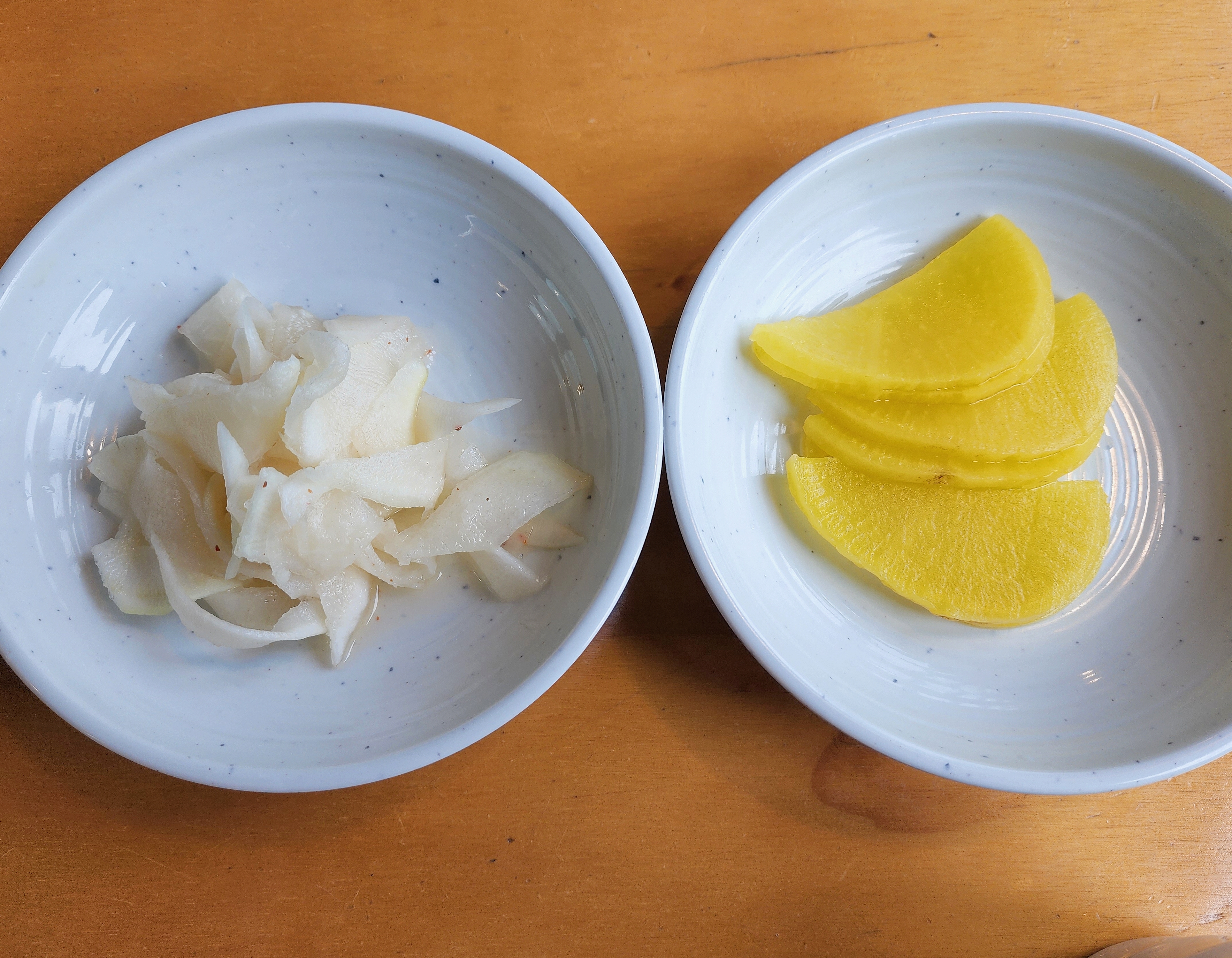 기본 메뉴는 딱 두 가지, 무생채와 단무지입니다.