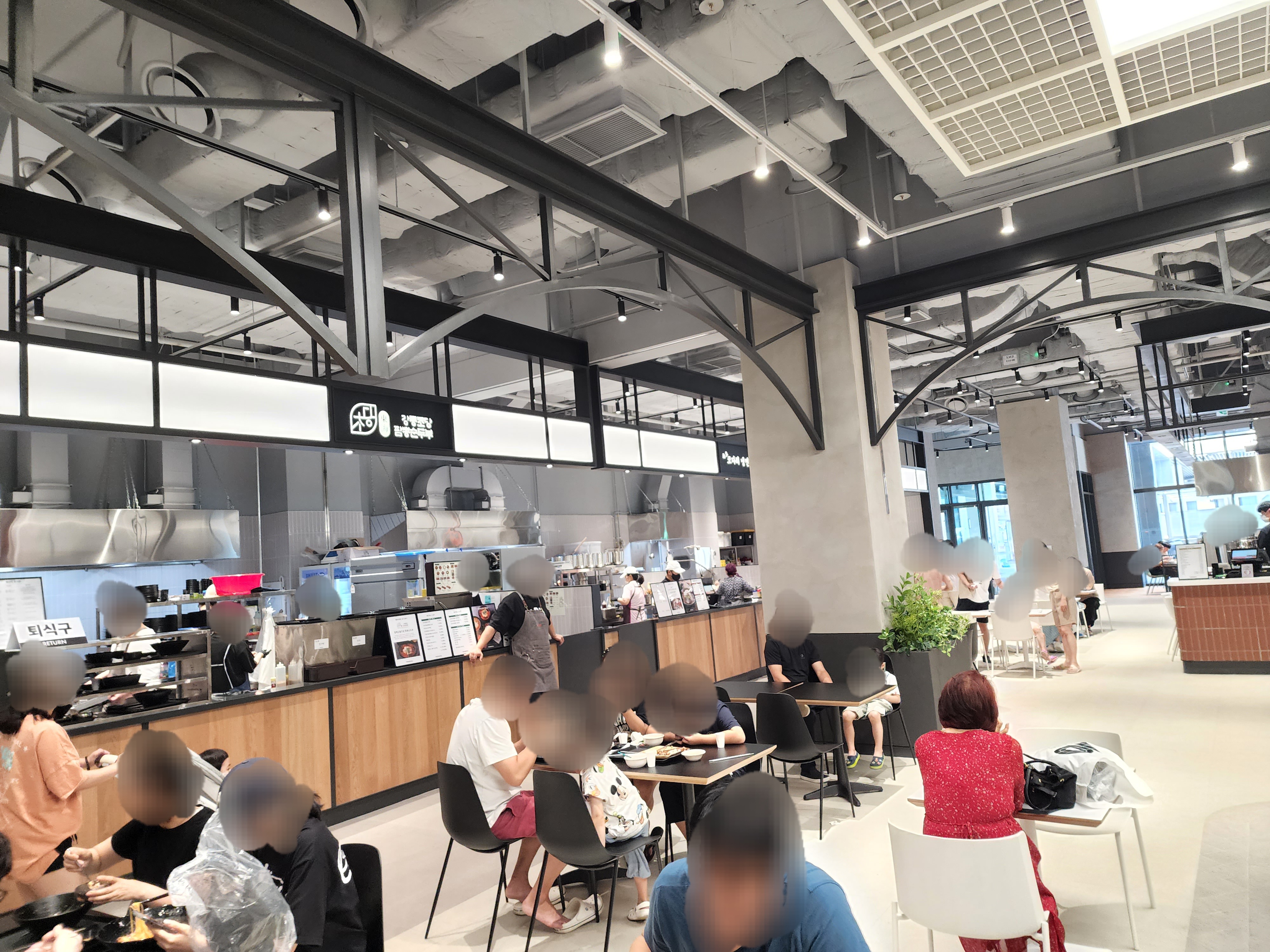 1층은 푸드홀입니다. 여기서는 다양한 음식을 맛볼 수 있습니다.