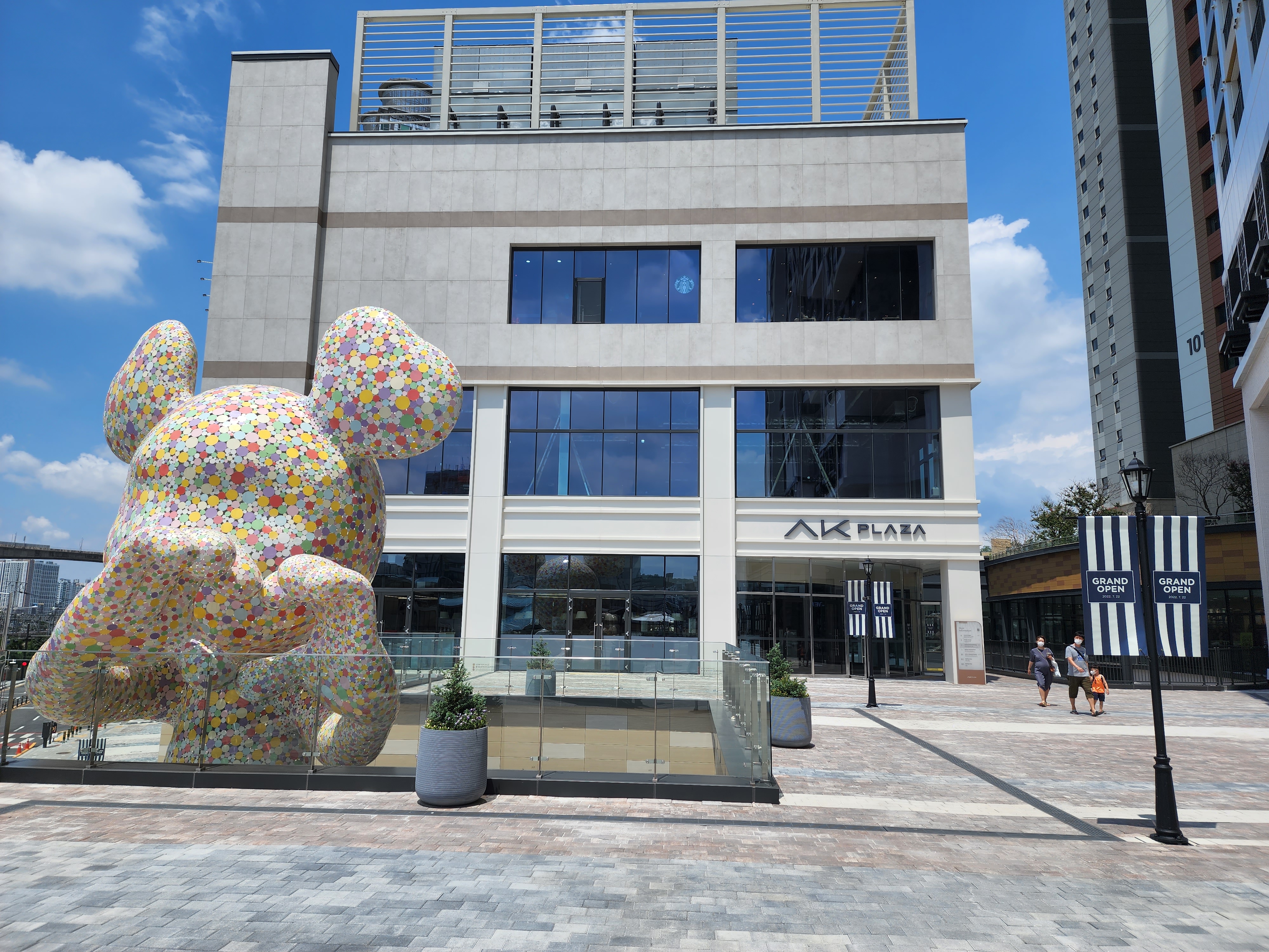 전면에 보이는 건물으로 들어가면 식당가(1~2층)와 유니클로(3층), 스타벅스 및 옥상 정원(4층)에 갈 수 있습니다. AK프라자 3~4층은 앞 건물에 한정된 영역이라 작습니다.