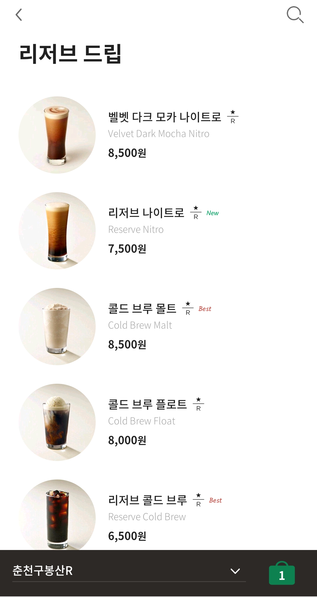 매장으로 가는 길에 스타벅스 어플을 이용해 리저브나이트로 1잔, 아이스 허니 얼그레이 밀크티 1잔을 주문 했습니다. 참고로 어플로 주문할 시 2km 안에서 주문해야 합니다.