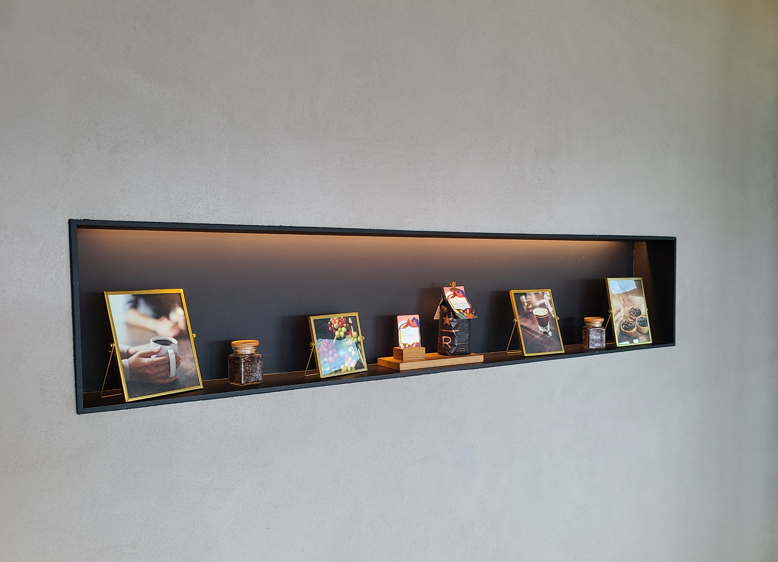 매장에 들어서면 입구 반대편은 통창으로 구성되어 춘천을 내려다볼 수 있습니다. 입구가 있는 층을 기준으로 아래/위에 한 층씩 총 3개 층으로 구성되어 있습니다. 1층은 야외로 나가 산책할 수 있게 되어 있고, 2층에는 야외 테라스가 있습니다.