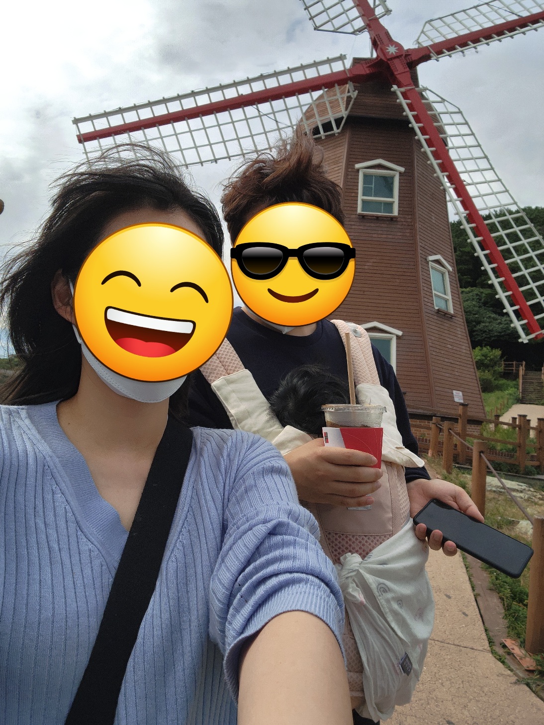 저희 부부도 한 컷 남겨보았습니다. 임신했을 때는 피부가 좋았었는데 출산 후에는 얼굴이 영... 생기가 없습니다. 모유수유하느라 관리는커녕 화장도 안 해서 셀카 찍으면 너무너무 슬퍼요😢