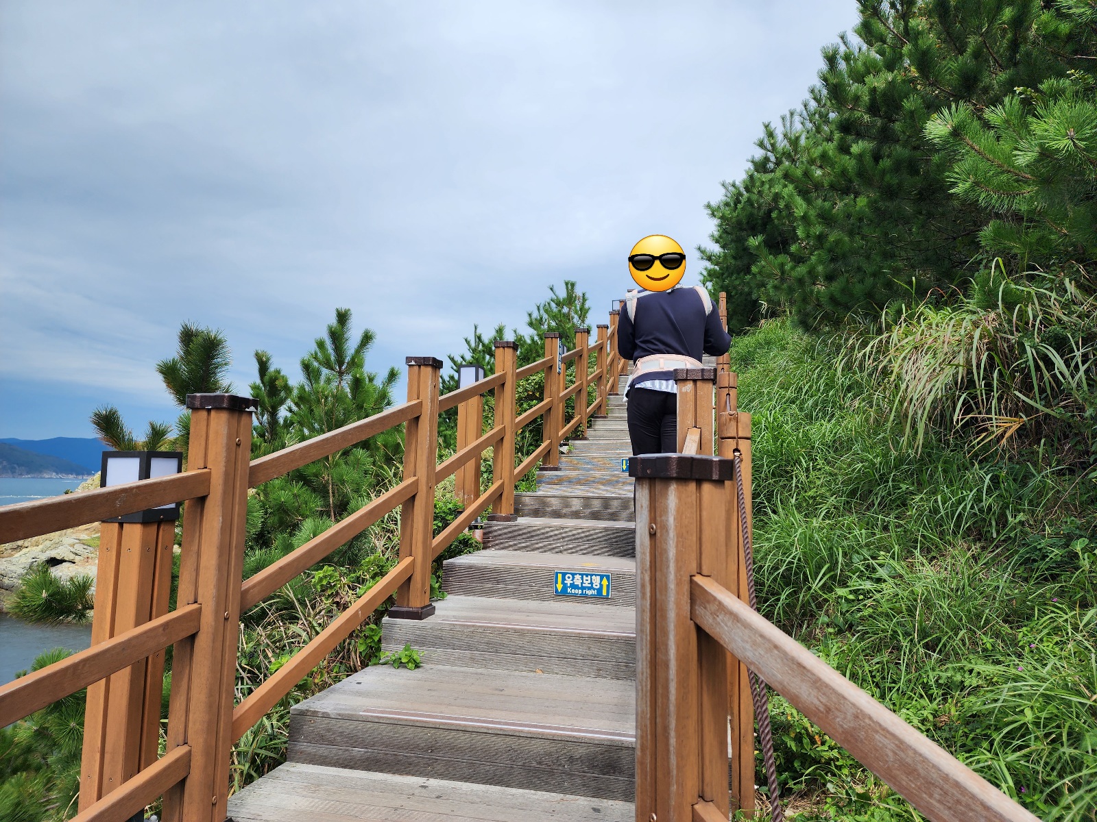 바람의 언덕까지 올라가는 길은 계단이라 유모차 이용이 어렵습니다. 그래서 남편이 이번에 새로 구입한 에르고 베이비 알타 힙씨트를 매고 걸어갔어요.