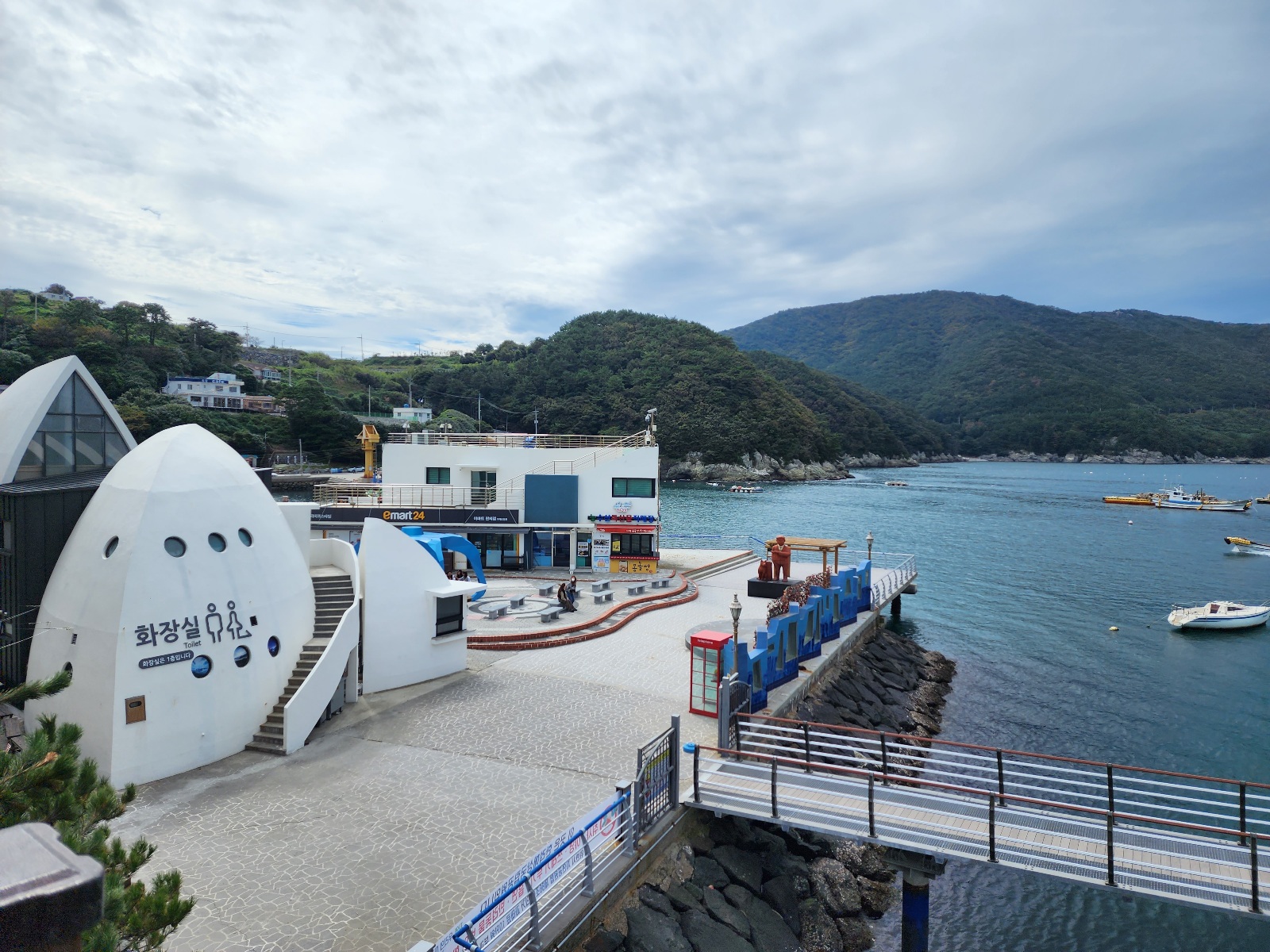 바람의 언덕에 오르는 길에 바람의 쉼터가 보입니다. 과거 도장포 방파제를 힐링의 공간으로 새롭게 구성하였다고 하네요.