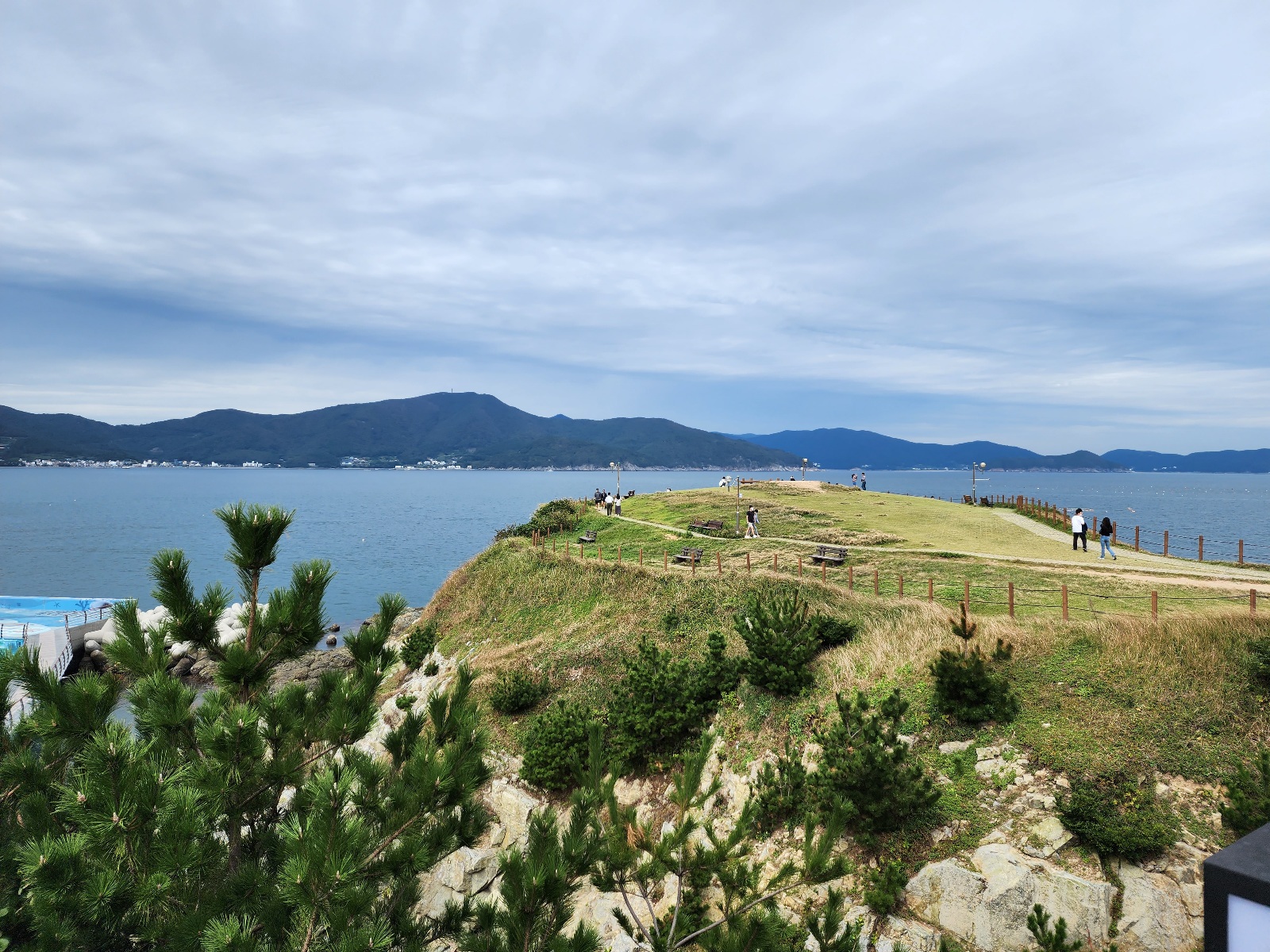 날씨가 흐려서 아쉬운 거제 앞바다입니다. 맑은 날 사진은 정말 예쁘던데, 흐린 날은 그냥 그렇습니다.