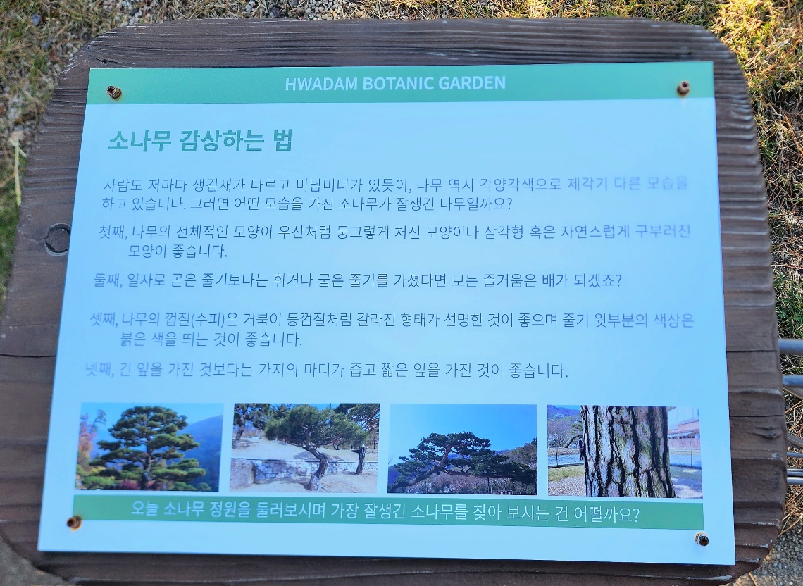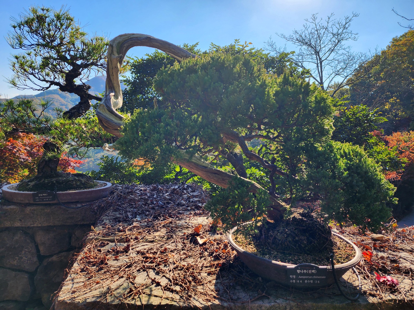 여기에는 자연적으로 특이하게 휘거나 굽은 줄기를 가진 소나무들이 많아요. 소나무 희귀템을 모아둔 곳이랄까요? 재벌집에 있을 것 같은 소나무들입니다. 아마 굉장히 비쌀 것 같습니다.